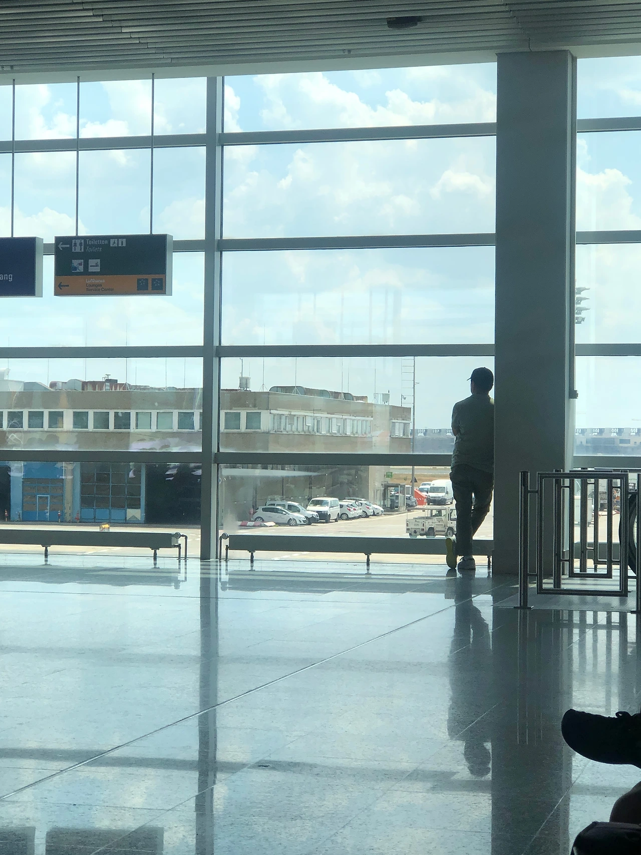 이번 스페인 여행은 비행기 연착으로 시작했다. 아침 7:20 출발이어서 4시에 알람을 맞춰놓았는데 일어나 보니 2시간 연착 알림이 와 있었다. 결국 프랑크푸르트에서 연결편을 놓쳤다. 프랑크푸르트 공항은 냉방이 잘 되지 않아 후덥지근했고 검은 머리 승객이 거의 보이지 않았다. 6시간이나 공항에서 기다려야 했지만 덕분에 점심으로 독일 소시지를 줄길 여유가 있었다.