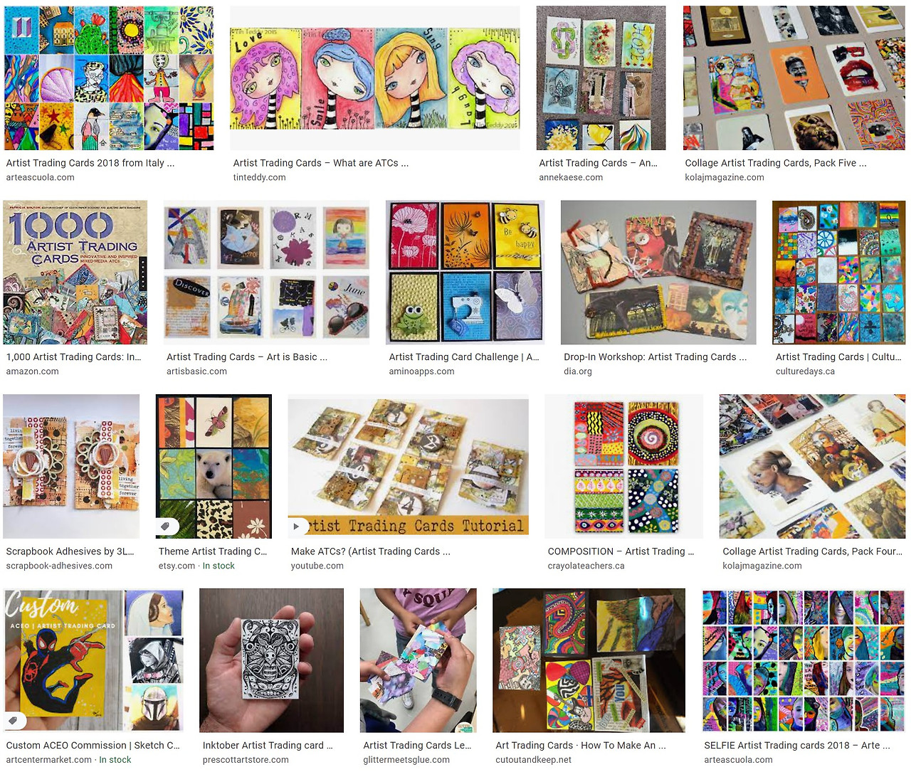 지난 봄 학기에 커뮤니티 칼리지 중급 드로잉 수업 시간에 제출한 과제물이다. 이전 과제로 아티스트 트레이딩 카드(Artist Trading Cards)라는 작업을 하였다. 이 과제가 나에게는 매우 생소했는데, 미국에서 자란 젊은 학생들은 어릴 때 많이 했던 프로젝트라고 했다. 2.5x3.5인치 크기 카드에 자신의 예술적 아이덴티티를 드러내도록 다양한 미디엄을 이용하여 장식하는 작업이며 카드 교환 행사가 매년 열리고 아티스트들이 행사에 실제 참여하여 카드를 교환한다고 한다. 코로나 이후로 교환 행사는 잠시 중단된 상황이라고 한다. 아래는 구글에서 <Artist Trading Cards>라는 키워드로 이미지 검색을 했을 때 나오는 이미지들이다.