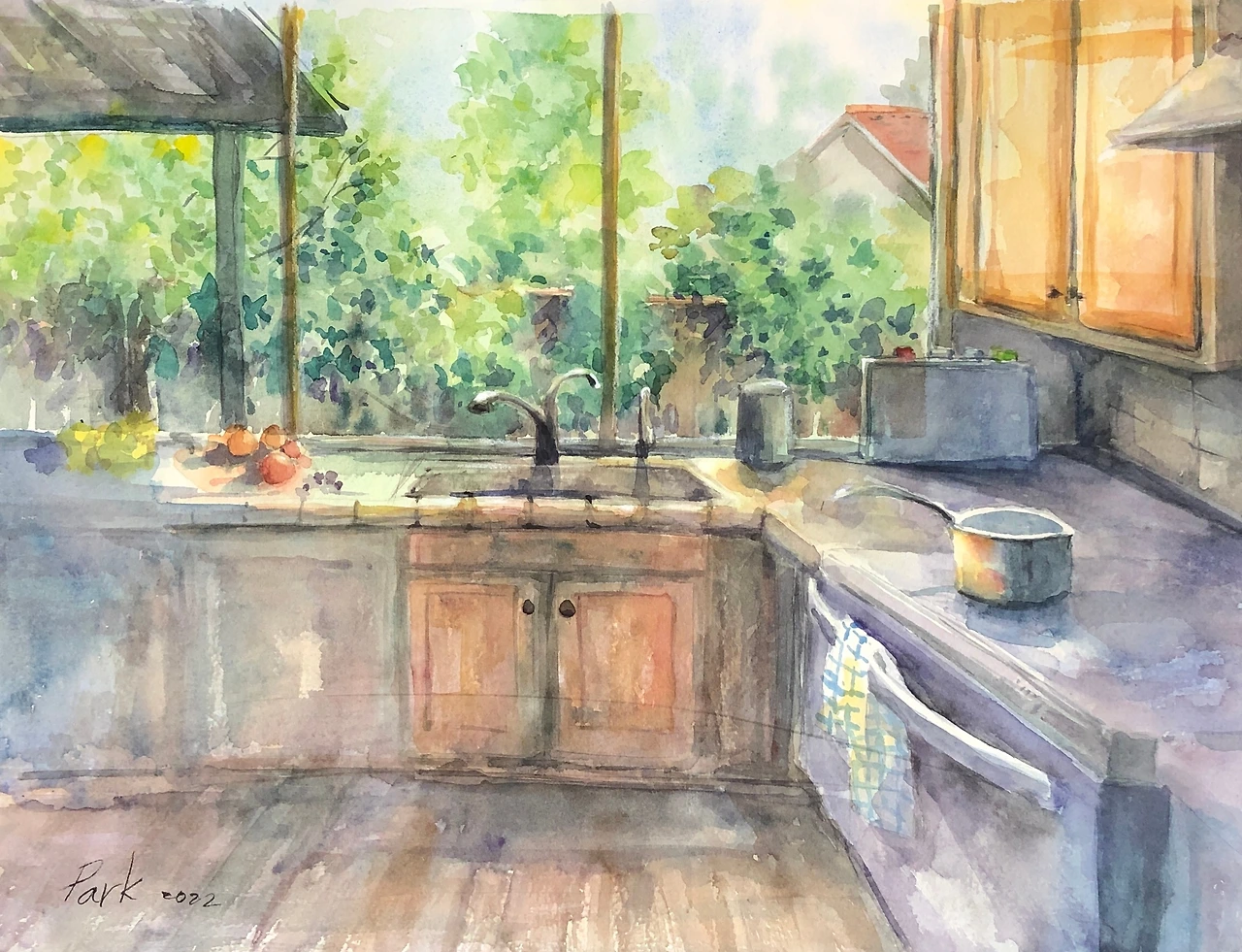 오른쪽 위: 지금 사는 집의 부엌 그림이다. 작고 낡았지만 창이 있는 공간이 마음에 들어서 부엌 그림을 여러 장 그렸는데 그 가운데 마음에 드는 그림이다.