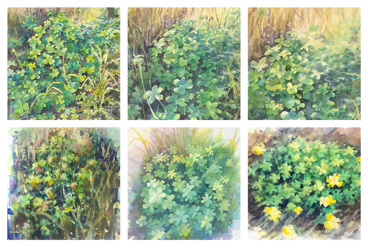 꼭 일 년 전이다. 집에서 가까운 산책길에서 잎이 클로버와 닮았지만 노란 꽃이 피는 잡초 더미를 만났다. 작은 잎이 소담스럽게 모여서 보여주는 생명의 모습이 얼마나 싱그럽던지 그 모습을 꼭 그림으로 표현하고 싶었다. 수채화 초보자 실력으로는 몇 번을 그려도 그 아름다움을 마음에 차게 표현해낼 수 없었다. 완성해서 사진을 찍어둔 것만 다섯 장이니까 정말 많은 스케치를 해보았다. 사진을 그대로 그리려고 노력해도, 사진을 떠나서 아름답게 그리려고 노력해도, 자연스럽게 그리려고 노력해도 그림은 내가 표현하고 싶은 사실과 달랐으며, 도대체 내가 표현하고 싶은 것이 무엇이기에 내 그림에 표현되지 않는지조차 알 수 없었다. 그냥 내 실력으로는 그릴 수 없는 장면이라고, 이 아름다움을 내 손으로 화폭에 담는 걸 거의 포기했었다.