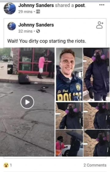 시위는 폭동으로 변하기 시작할 무렵 페이스북에는 조지를 살해한 데릭 쇼빈 경관을 옹호하는 그룹이 생기고, 그들도 활동에 나섰다. 아래 원본 비디오 화면은 상점 약탈이 일어난 첫날 촬영한 것이다.