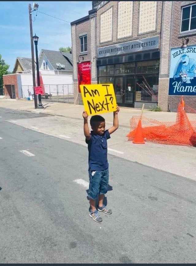 화면에서 한 남성이 망치를 들고 상점 창문을 모조리 깨면서 걸어간다. 한 흑인 여성이 뒤를 따라가면서 부른다. "Sir, wait please." (선생님, 잠깐만요-대충 이런 말이 나왔는데 이 비디오가 삭제되었는지 지금 찾아볼 수 없다.) 한참을 따라가니 남성이 걸음을 멈추고 돌아본다. "You don't need to do this, sir." (이러시면 안 되지요.) 그런데 방독면 뒤에 있는 얼굴은 동네 사람들에게 익숙한 백인 경관 얼굴이었다. 사람들은 체류 가스를 맞고 타들어가는 피부를 식히기 위해 우유를 사러 상점에 들어가지만 상점에서는 시위대에게 우유를 팔지 않는다. 약탈이 시작된다.