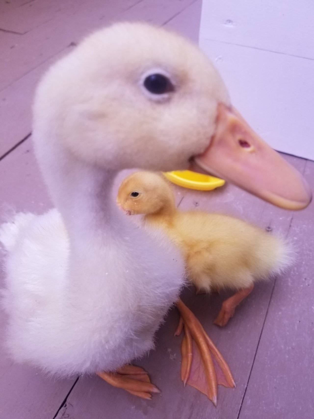 오리는 알면 알수록 사랑스러운 동물이랍니다. 사람처럼 사회적 동물이므로 가족이나 친구가 없이 혼자 있으면 슬퍼합니다. 심지어 우울증에도 걸릴 수 있다니, 참 감정이 풍부한 아이들입니다. 오그리도 그랬습니다. 주위에 사람이 없으면 계속 울고, 잠을 잘 때도 내가 잠자는 모습이 보이지 않으면 울어댔습니다. 오그리가 알에서 나온 이후 몇 주 동안 우리 가족은 돌아가면서 오그리 옆에서 잤습니다. 하지만 우리 가족은 사람이고 계속 이렇게 생활할 수는 없었습니다. 생각 끝에 우리는 오리를 한 마리 더 입양을 하기로 했습니다.