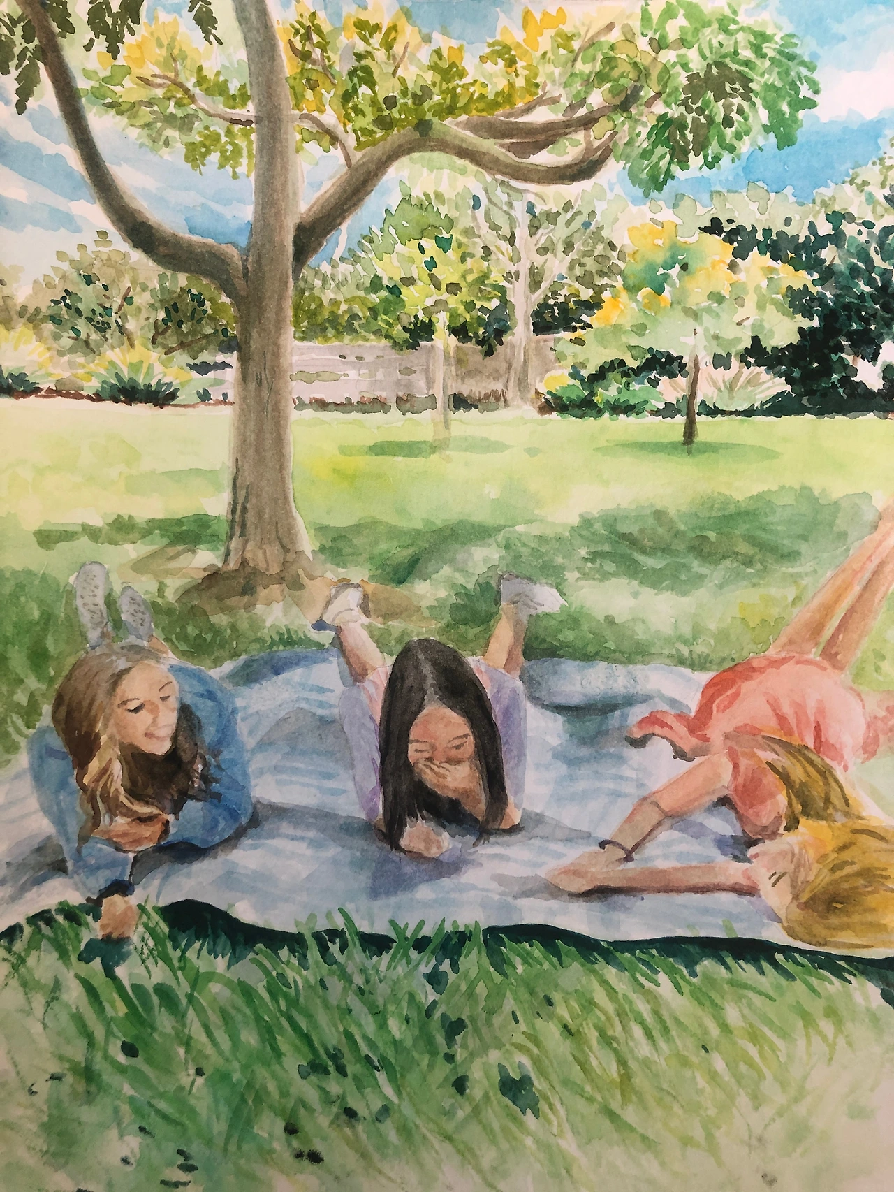 며칠 전, 개학을 앞두고 딸이 친구들과 소풍을 다녀왔다. 집 앞 공원에서 준비해 간 간식도 먹고 얘기도 하고 사진도 찍으며 반나절 시간을 보내고 왔다. 코로나 바이러스 소동으로 여러 명이 한 번에 만난 것은 오랜만인 것 같았다. 그날 찍은 사진에는 여름 끝자락에 걸린 풍경이 참 아름답게 담겨 있었다. 고집스럽게 초록인 나무는 초록이고 시간의 흐름이 농익은 풀색으로 내비치는 나무도 있다.