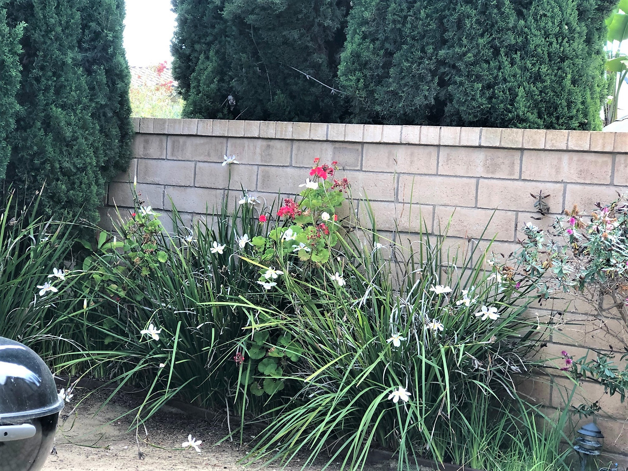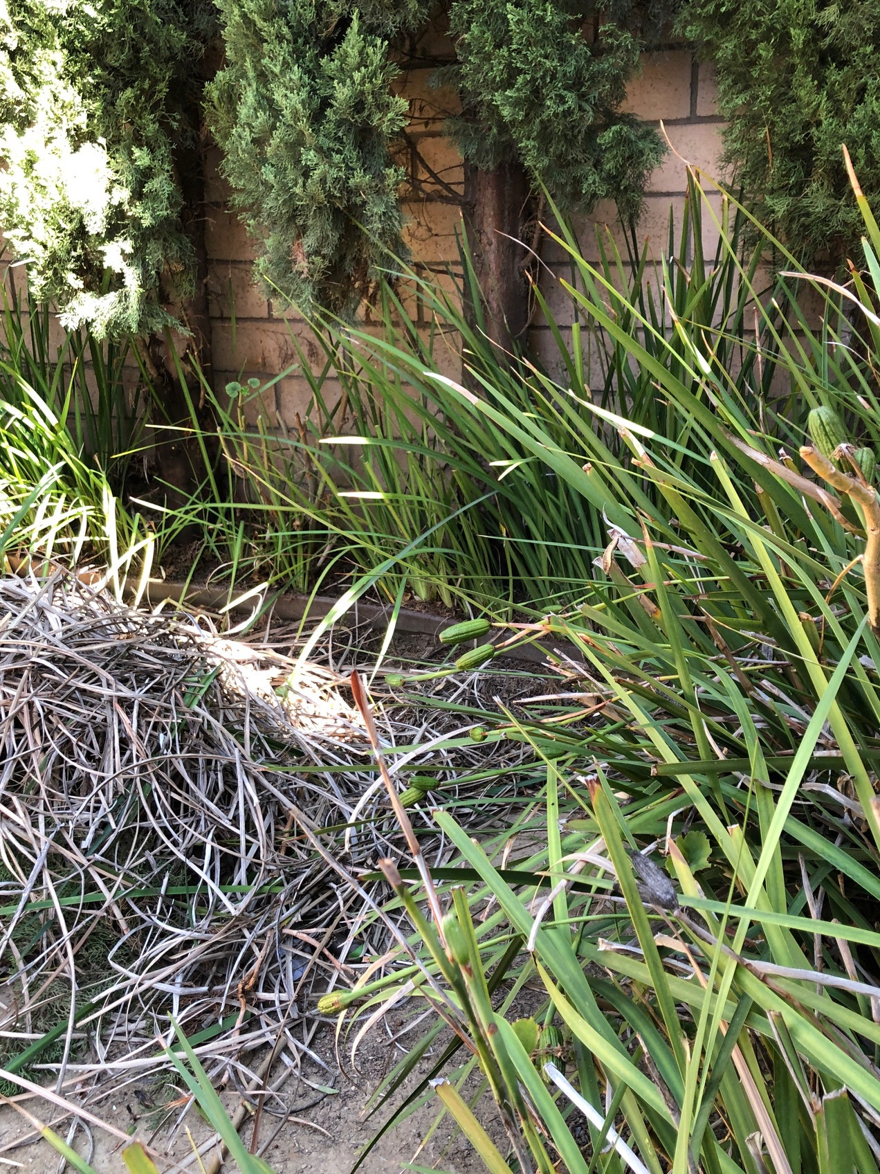 오늘 가장 오래 공들인 화초는 수선화 같은 꽃을 피우는 풀들이다. 이런, 이름도 아직 모르는군. 여름에 반짝 꽃을 피우고 이제는 꽃 대신 마른 잎만 잔뜩 달고 있는데, 세를 놓은 방 창문 쪽에 있어서 돌봐주기가 쉽지 않았다. 게다가 옆집 사이에 사생활 보호를 위해 심어놓은 침엽수 아래에 줄지어 심어놓아서 침엽수에서 떨어진 마른 잎이 쌓이고 중간중간 억새풀처럼 자라는 제라늄과 잡초까지 있어서 마른 잎을 제거하기가 매우 어려웠다.