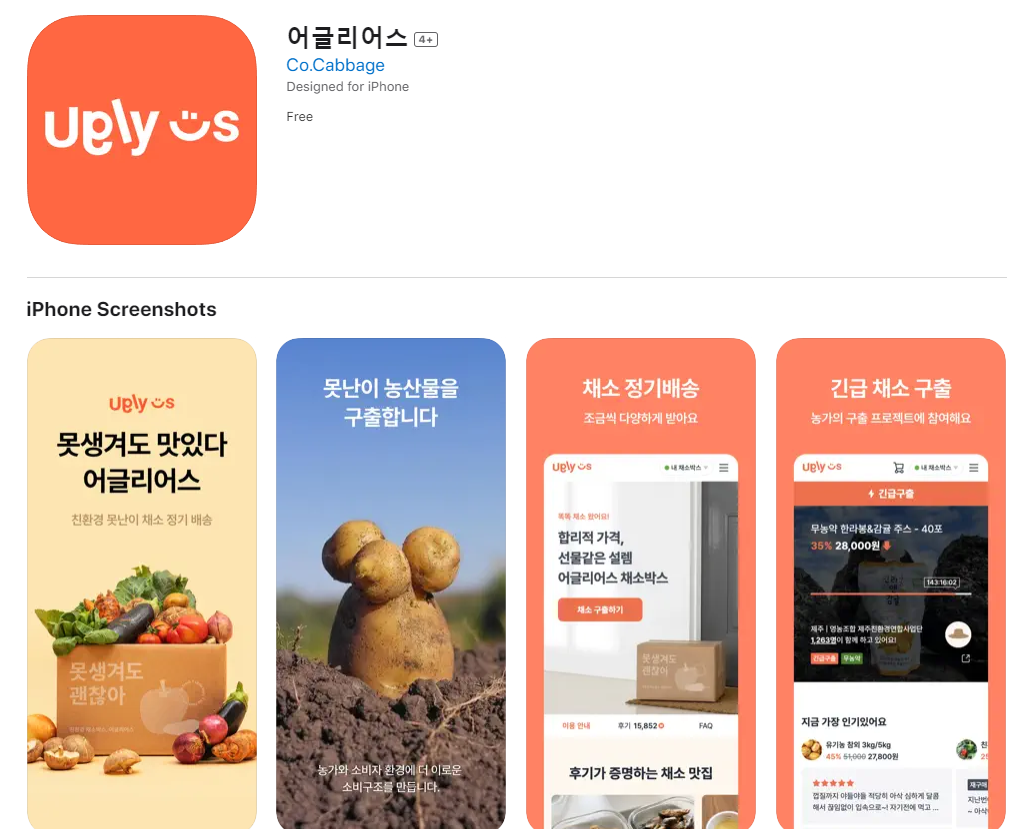 어글리어스 마켓은 2020년에 등장한 못난이농산물 구독 서비스 브랜드로, 현재까지 많은 이용자들로부터 사랑받고 있다. 최근에는 다양한 서비스 확장과 앱 출시 등으로 브랜드를 발전시키고 있고 친환경과 유기농 못난이농산물에 대한 가치를 일관되게 강조하고 있다.