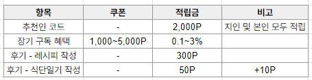 채소박스 구독 시, 지인의 추천인 코드를 입력하면 지인과 본인 모두 2,000P 적립금을 받을 수 있다.
