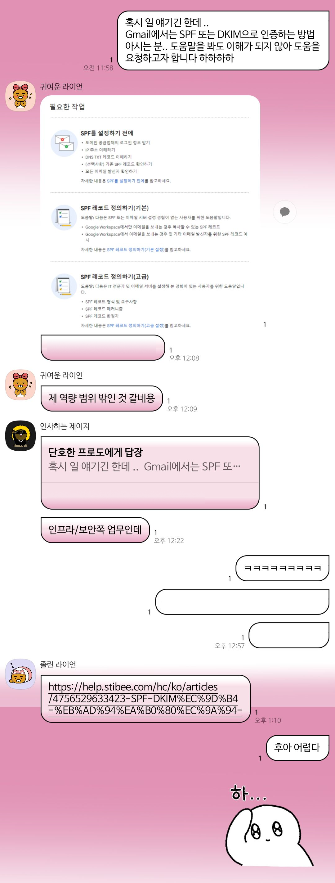 발송 차단 안내 메일에 있는 URL과 구글링에서 나온 내용을 확인해 SPF, DKIM, DMARC 등 이메일 인증 관련 내용들을 확인했다. 이걸 봐도 사실.. 도대체 이게 뭔데 하는 생각밖에 들지 않았다.. 이걸 어디에 인증 받으라는 안내도 없고 어디에 검색해서 알아봐야 할지도 막막했다.