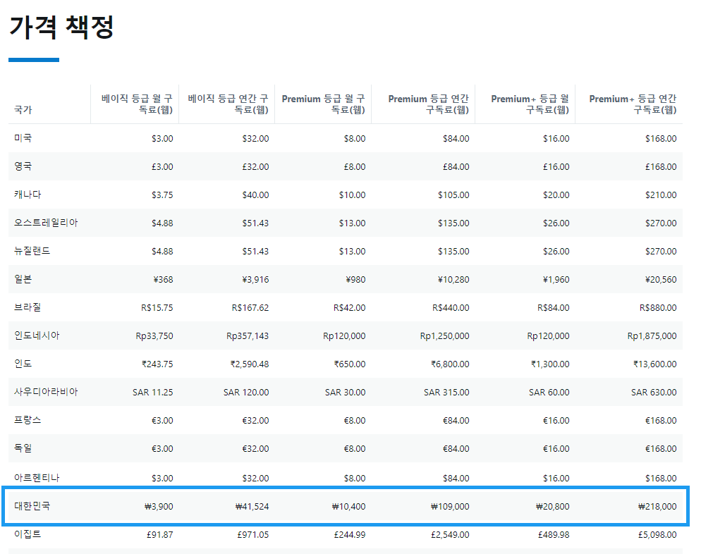 구독은 총 3가지, 베이직 / Premium / Premium+ 가 있어서 각각 필요한 기능을 보고 구독을 선택하면 된다.