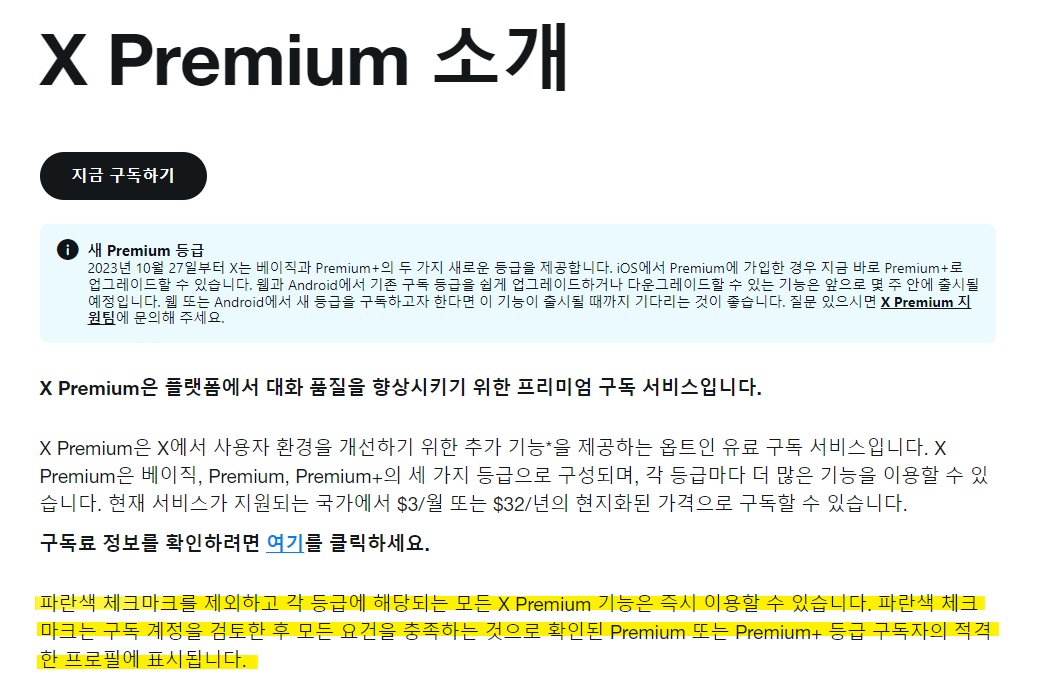 ① X Premium 구독 시 혜택 모두 즉시 이용 가능 (블루뱃지 제외)