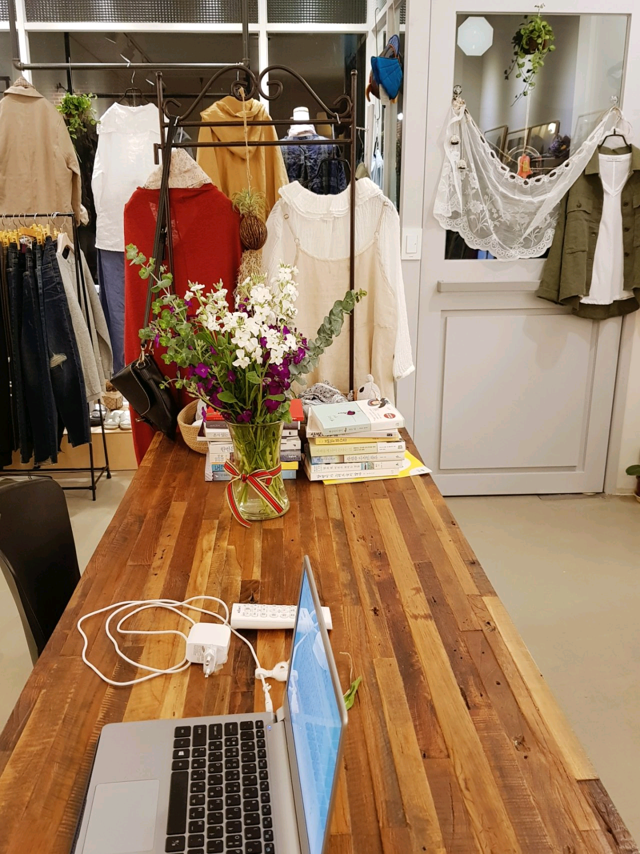 작년 봄에 써 놓은 짧은 일기 같은 글을 모아 보았다. 올해 봄과 여름 잃어버린 계절이 되었으며 이렇게 거리낌 없이 마주 보며 웃던 손님들은 마스크를 쓰고 만나고 있으며 쉽게 들르던 옷가게였지만 횟수가 줄어들 수밖에 없을 것이다. 너무나 당연했던 작년의 일상의 기록이 이렇게 그리운 날로 기억될 줄 몰랐다. 마음 놓고 편히 다닐 수 있는 날이 오기를 소망한다. 계절이 바뀌니 마스크를 쓰고라도 꾸준히 방문해주는 손님들 덕분에 요즘 분주해졌다. 이렇게 짬 내어 글도 쓰고 일도 하는 나는 오늘도 마음은 천국이다.