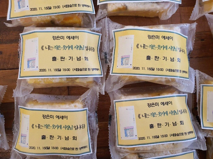 서울에서 새벽부터 오신 씽크스마트 출판사 대표님. 현수막 제작 등 여러 가지 지원을 아낌없이 해주신 동네책방 <숲으로 된 성벽> 선생님 두 분.. 구미에서 여기까지 먼 길 시간 내어 와 주신 조진향 기자님. 개인전 준비로 틈도 없을 텐데 직접 달려와준 서윤 씨. 진영에서 애들이랑 네 식구 총출동한 지혜님.. 김륭 시인 선생님은 어제 두 개의 일정이 있으셨는데 그거 빠지고 출판기념회에 달려오시고 반강제로 인사말까지 부탁드렸다. 시간이 없어서 못 온다던 고운동 카페 사장님은 손님들과 나눠 마시라고 원두와 오미자청을 미리 책방에 맡겨놓기도 했다. 그리고 숙언니와 팔월의 크리스마스 사장님의 재치 있는 책 낭독 역할극은 마지막 피날레 같았다. 바쁜 일정 때문에 행사 끝무렵에 달려와서 남은 책을 싹쓸이 해간 다혜 언니. 차도 없는데 어찌 달려왔는지 모임에 가는 길에 들러 모임 사람들에게 선물한다며 책을 가져간 것이었다. 이 마음들 두고두고 내가 갚아야 할 감사한 마음이다. 그리고 최연소 팬 준희. 준호까지.. 다른 분들도 모두가 귀한 휴일이고 날이 좋아서 단풍놀이도 가고 싶은 일요일 오후 3시. 그 귀한 시간에 나와 함께 자리 지켜준 모든 이들이 감사할 뿐이다. 친구 정숙이. 찐팬 순이와 선임이 늘 고맙고.. 주변에서 참 많이 도움 주셔서 더없이 행복하고 탈없이 행사를 잘 마쳤다. 친구 서정이는 아침 일찍 서둘러서 주문한 떡을 챙겨서 본인이 직접 제작한 스티커를 붙이느라 누구보다 먼저 도착해서 절친의 몫을 해주었다. 어제는 이 떡이 한몫을 했다. 역시 내 친구는 진짜 친구다. 생각지도 않았던 의외의 꽃다발을 받고 직접 방문해주시고 책을 몇 권씩 들고 오시고 또 사가시고.. 그날 동네책방의 책은 어제 완판 되었다.