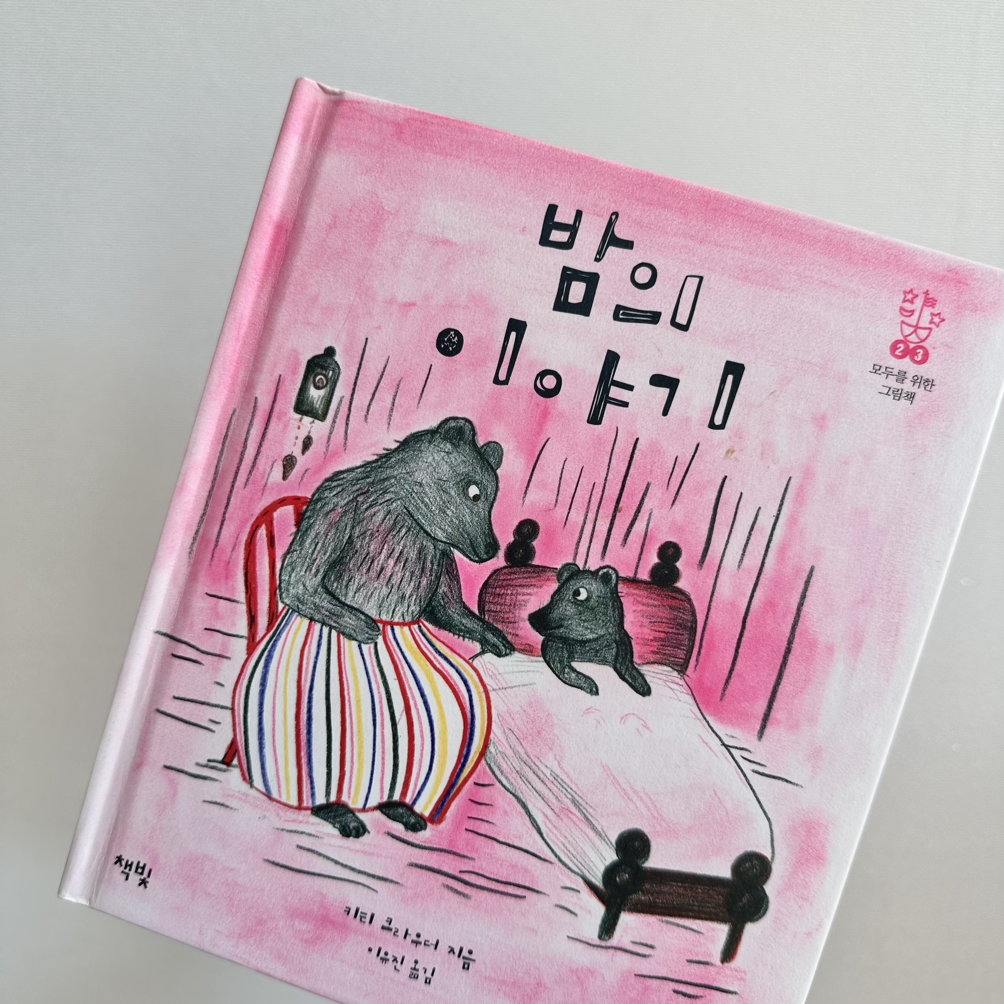 그러던 어느 날의 어느 시간. 디카페인 커피와 타이레놀, 임팩타민과 이뮨의 힘에 기대어 일으켜 세운 몸은 진분홍 색의 그림책 한 권 앞에서 나는 떨림을 감추지 못했다. (사실은 마그네슘 부족으로 인한 눈 밑 떨림 증상이었지만, 뭔가 ‘있어 보이게’ 표현하고 싶었다.) 바로 키티 크라우더 작가의 『밤의 이야기』. 책 속의 엄마 곰은 이제 막 잠자리에 들려는 아기곰의 부탁으로 아기곰에게 세 가지 이야기를 들려준다. 밤과 잠을 각기 다른 모습으로 통과하는 세 사람의 이야기를. 나는 이를 나 자신에게 나긋한 목소리로 들려주었다. 스스로에게 들려주는 베드 타임 스토리 위에, 스스로에게 돌려주고 싶은 마음을 가득 얹어서.