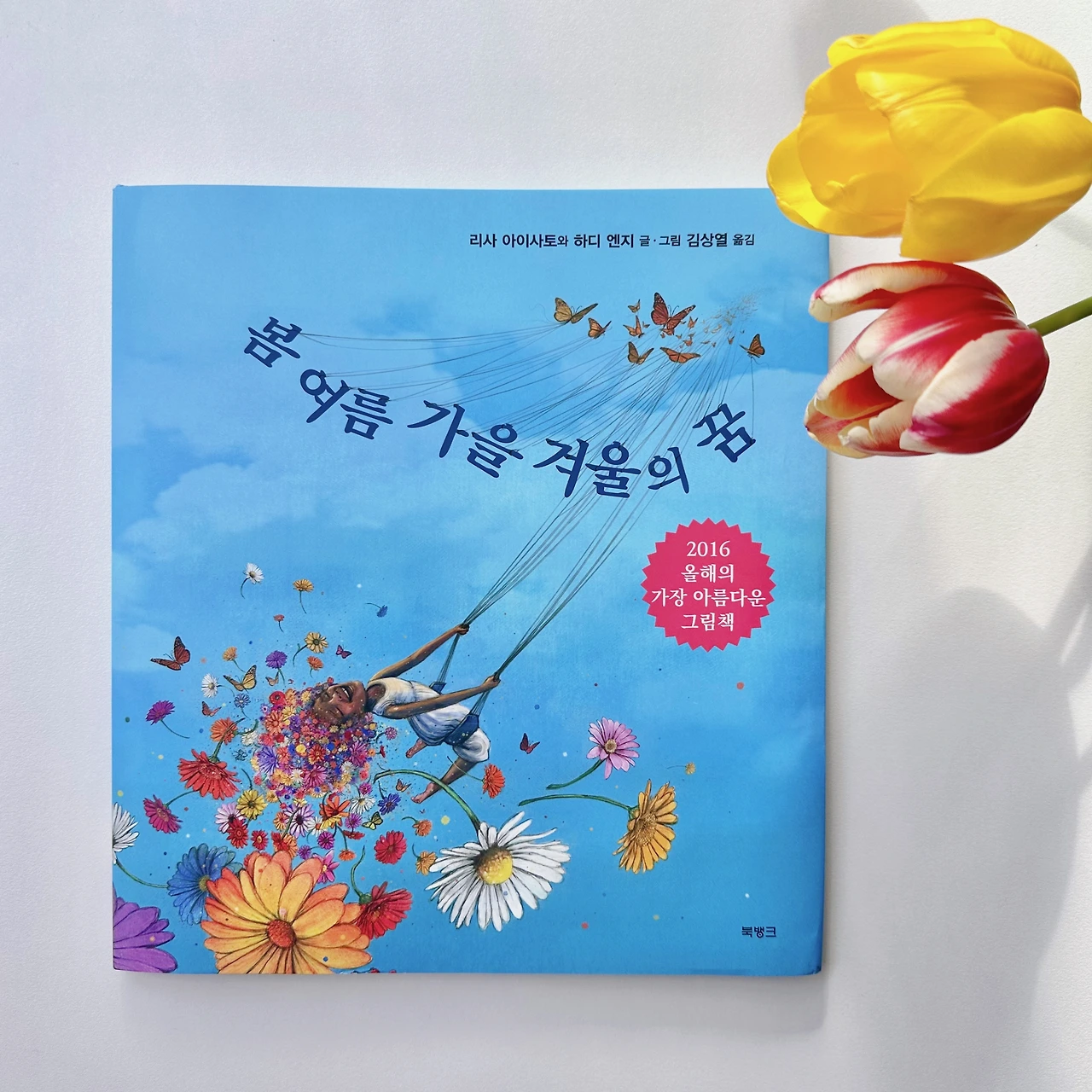 때마다 다른 사랑에 감기고 잠겼던 삶, 저마다 다른 사랑을 만나고 살았던 삶의 모든 순간을 담담하고도 황홀한 아름다움으로 표현한 『삶의 모든 색』. 이 그림책을 만든 리사 아이사토 작가와 그의 자매 하디 엔지 작가가 함께 만든 『봄 여름 가을 겨울의 꿈』에는 『삶의 모든 색』과 겹치는 그림이 두어 장 포함되어 있다. 다른 책에 실린 같은 그림, 다른 이야기로 전달되는 같은 마음을 찾아보는 아름다운 과정은 전작 『삶의 모든 색』을 아꼈던 독자들을 위한 작가의 선물이 아닐는지.