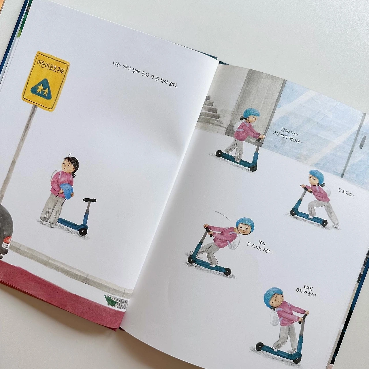 요즘 들어 엄마아빠나 선생님 같은 어른의 도움 없이도 혼자 할 수 있는 일이 부쩍 많아진 일곱 살 아이. ‘잘’ 할 수 있다는 자신감과 확신이 서는 일이 아니라면 선뜻 나서지 않는 아이의 성향을 감안할 때, 아이의 ‘혼자 할 수 있는 일’ 목록은 아이의 성장 여부를 가늠하는 바로미터나 다름없다. 내 방에서 아침까지 혼자 잘 수 있어. 놀이터까지 혼자 갈 수 있어. 이 기구를 혼자 탈 수 있어. 이 뚜껑을 혼자 딸 수 있어. 여기서 어떻게 하면 좋을지 곰곰이 생각하면 혼자 알 수 있어. 혼자라서 두렵고 걱정되는 마음을 혼자서 다스리는 법을 체득해 가는 아이의 마음. 그 안에 스스로를 향한 믿음과 확신이 아로새겨지고 있다.