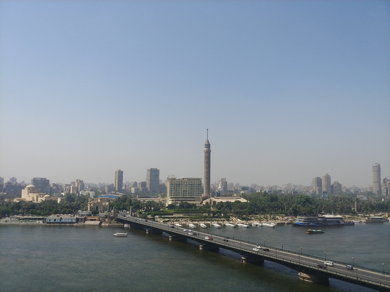 카스르 엘 닐 다리가 고대의 강을 가로질렀고, 187미터 높이로 우뚝 솟은 강 건너 카이로 타워가 조금은 기이하게 보였다.