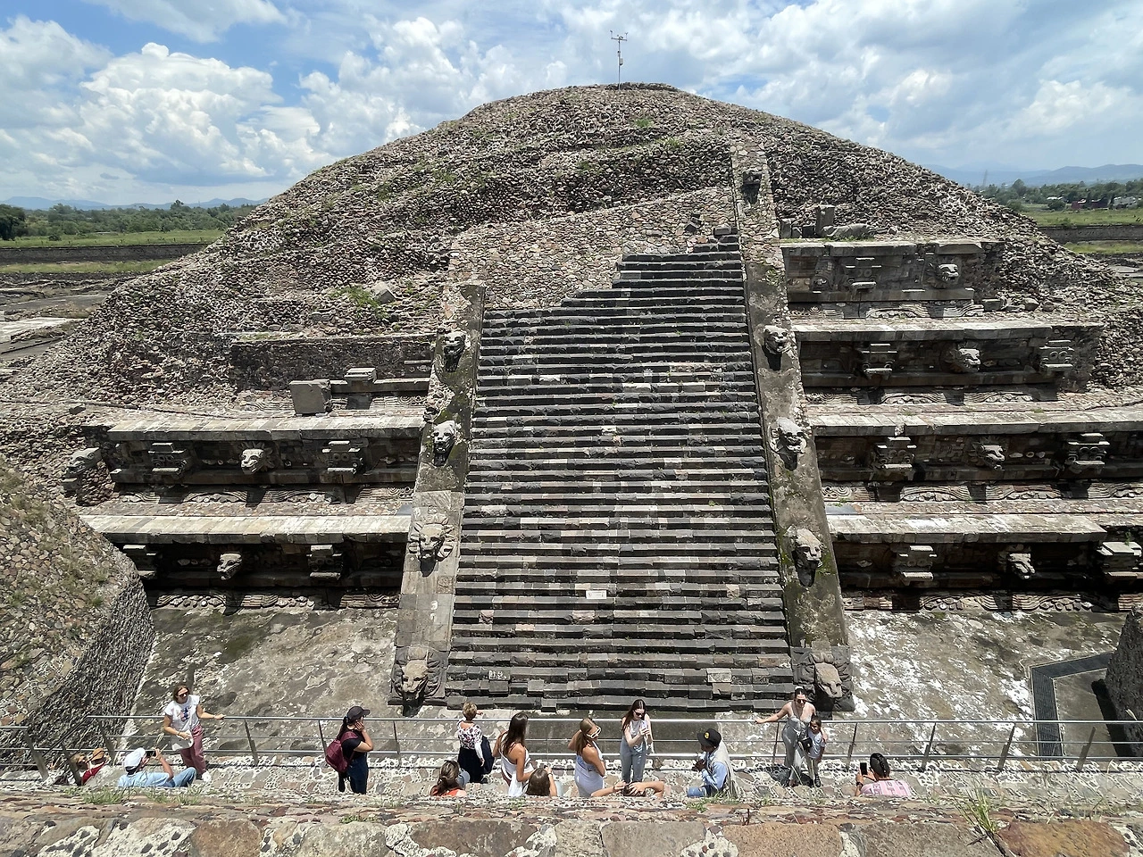 신화 속 깃털 달린 뱀의 이름을 딴 기념비적인 피라미드를 배경으로 관광객들이 북적였다.