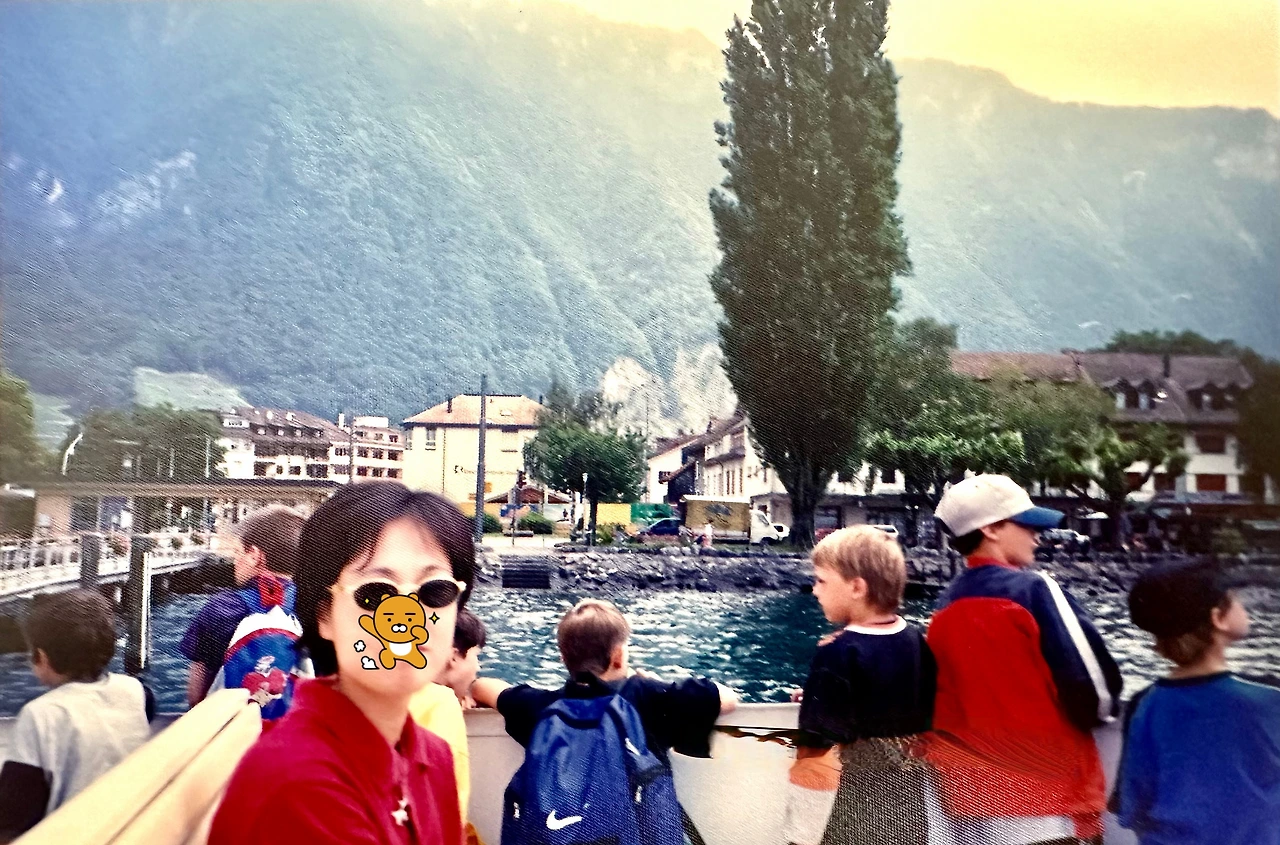 둥둥 둥둥 지루함을 이기려 활짝 웃기 시작했을 때, 배는 호수 맞은편 어느 프랑스 마을에 접안하였다. 에비앙이었던 것 같기도 하고. 그때, 아무런 신호도 없이 열 명 남짓 사내아이들이 우리 배에 올라탔다.