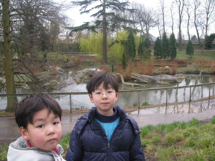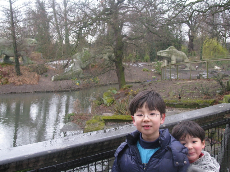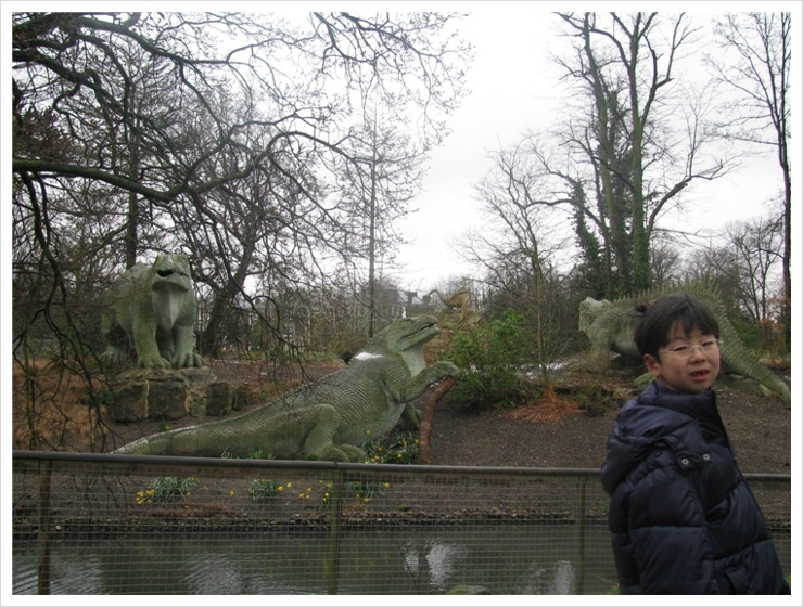 신이 나서 걸을 때면, 마치 티라노사우루스가 빙의한 듯, 반원 모양으로 구부린 두 손을 가슴팍까지 끌어올리고 허리를 45도 각도로 수그린 채 "으르렁 크르렁" 포악한 육식 공룡의 흉내를 곧잘 내곤 하던 아이들 생각에 우연찮게 집어 들었던 책 한 권. 1800년대 중후반에 세계 최초로 공룡 모형을 만든 영국 조각가 워터하우스 호킨스에 관한 그 책에 따르면, 그가 만든 공룡들이 아직도 런던 외곽의 시든엄(Sydenham)이란 곳에 남아 있다길래 온 가족 합심하여 그곳에 꼭 한 번 가 보기로 했던 것이다.