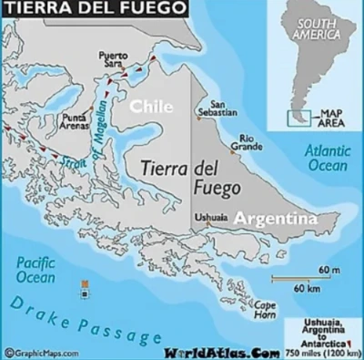 티에라델푸에고(Land of Fire). 거대한 버려진 땅이었다. 칠레와의 국경을 1880년에야 그었고, 1902년부터 죄수들을 동원해 정착촌을 건설했다. 기업에는 세금을 감면해 주고, 근로자에게는 임금을 올려주는 식으로 본토 주민들을 이주시켰다. (칠레 쪽은 만명도 살지 않고, 푼타아레나스가 땅끝 역할을 담당한다.)