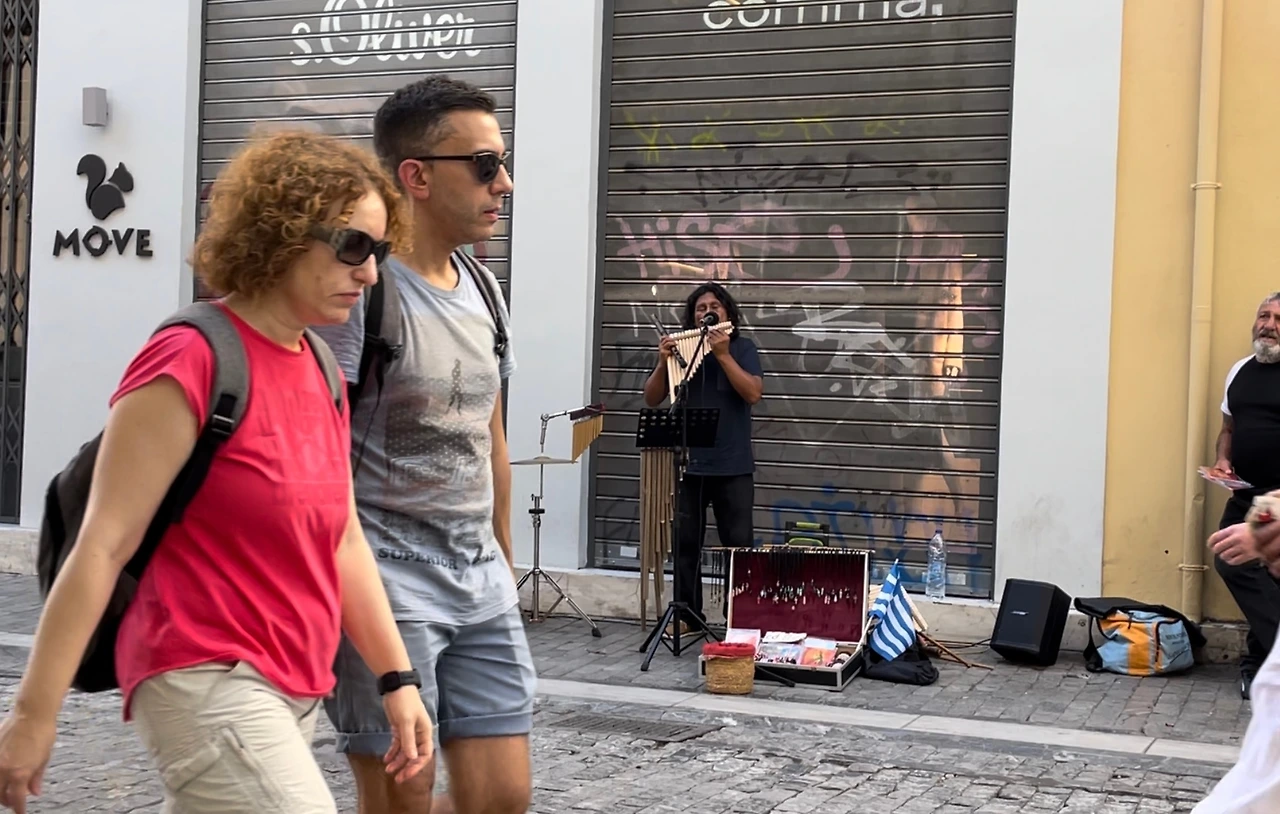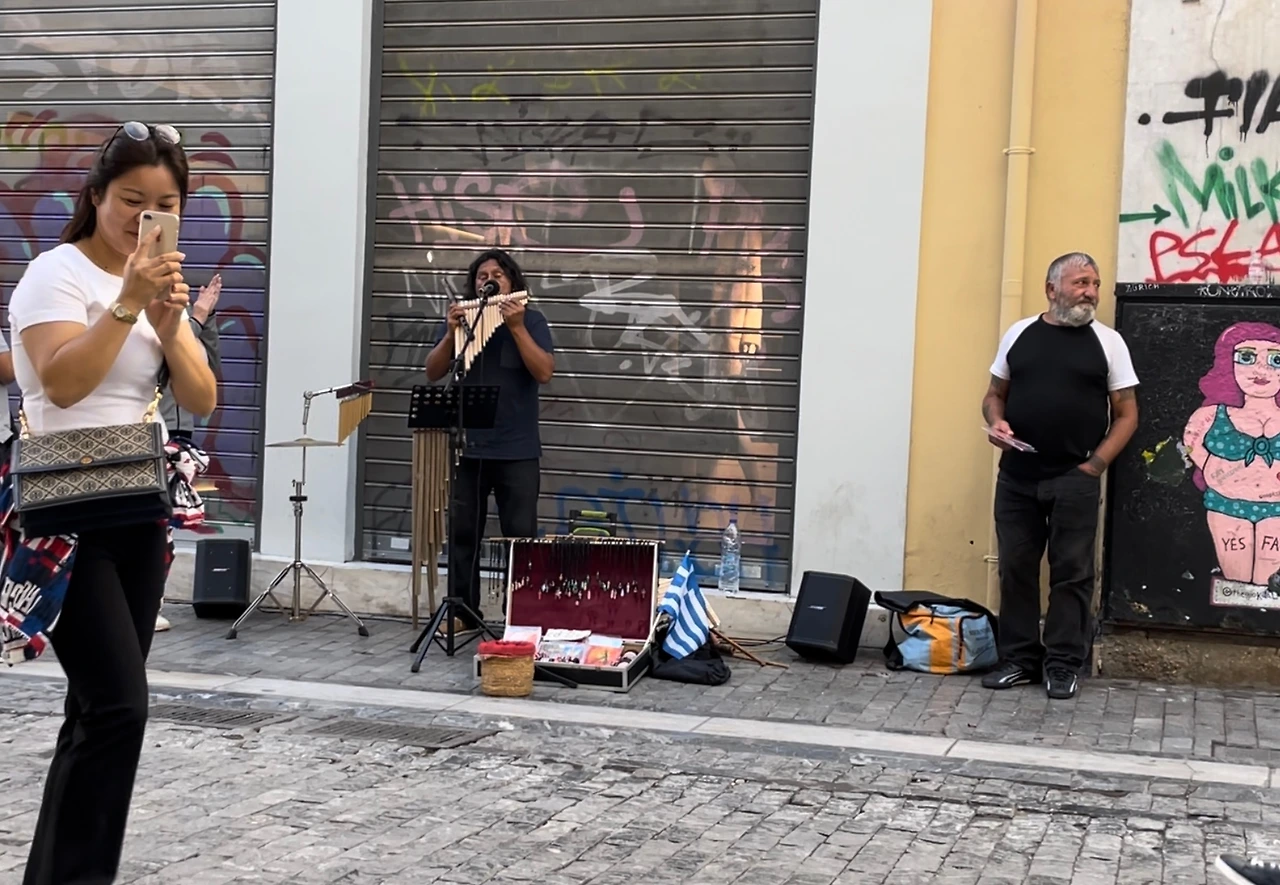 서너 걸음을 떨어져 줄곧 그 남자를 감시하던 그리스 남자의 경계 어린 눈빛을 애써 무시하고, '엘 콘도르 파사(El Condor Pasa)'를 연주해 줄 수 있겠느냐고 물었다. 아테네 뒷골목의 페루 남자는 유명 연주자 레오 로하스 보다도 더 혼을 실어 팬파이프를 불기 시작했다. 나는 다시 맞은편 셔터에 기대어 섰다.