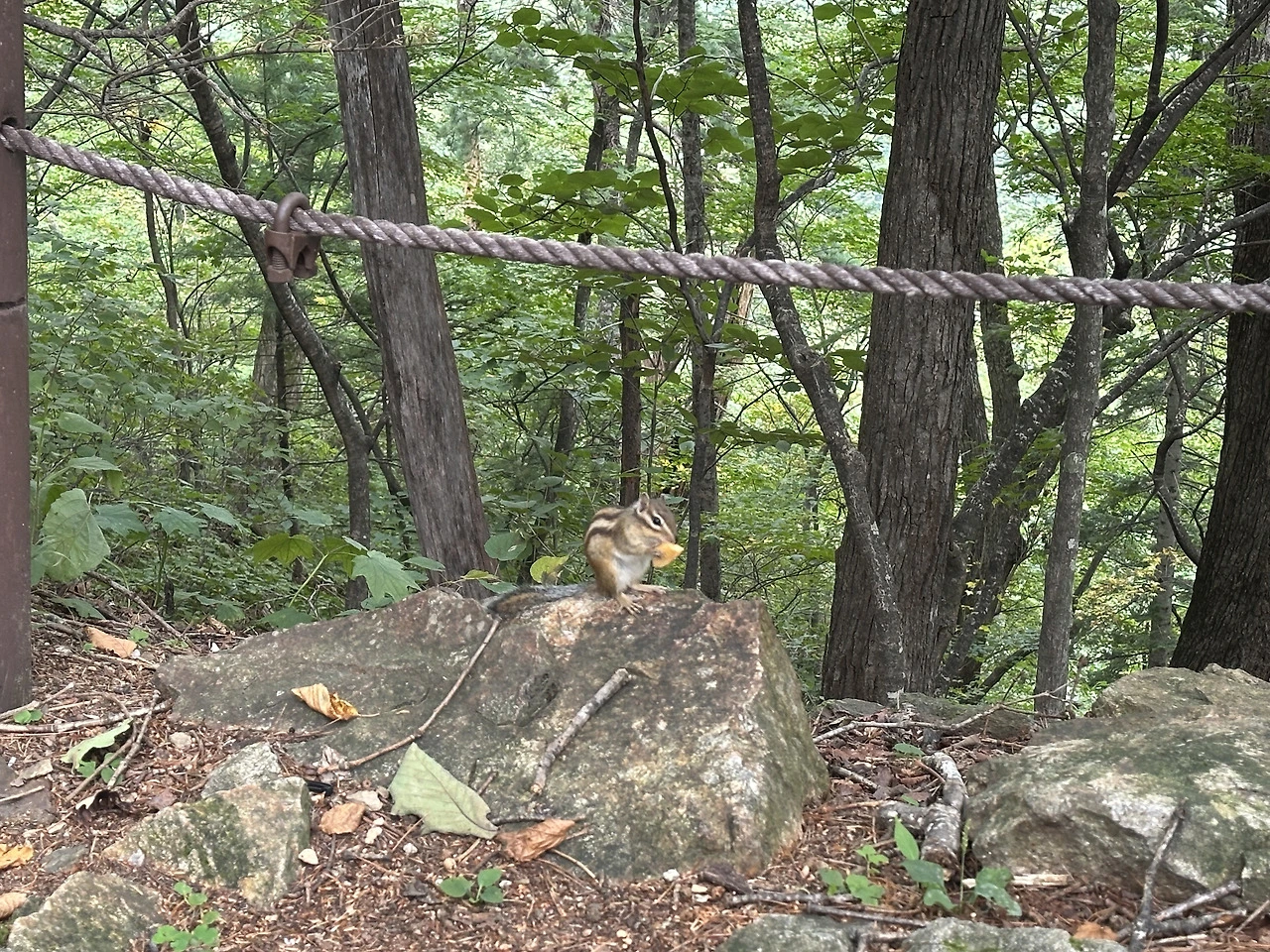 내려가는 길이 길지 않을 터인데 다람쥐 한 마리 나를 맴돌았다. 무겁지 않게 잘게 잘라 사과를 보시하였더니, 집을 잊었는지, 내 지척에 한참을 머물렀다.