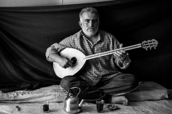 '난민으로 집을 떠날 때 딱 한 가지만 챙겨야 한다면?'을 주제로 한 사진작가 브라이언 소콜의 사진 중에 지중해 건너편의 독재와 내전으로 고통받는 나라 시리아의 난민 오마르 씨가 향수를 달래며 연주하는 부주키도 보인다.
