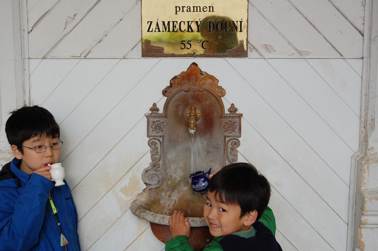 빗물이 용암 지반으로 흘러들고 다시 이곳 온천수로 뿜어져 나오기까지 천 년의 세월이라고 했다. 천 년을 지낸 온천수를 처음 맛본 아이들의 표정이 떨떠름하였다. 몸에 좋다 하였으니, 뭔지 모를 욕심에 컵 한가득 채운 (청송 달기약수를 데운 듯한 맛의) 온천수를 참고 마셨으리라. 라젠스키 포하레크가 마법도 부렸을 터.