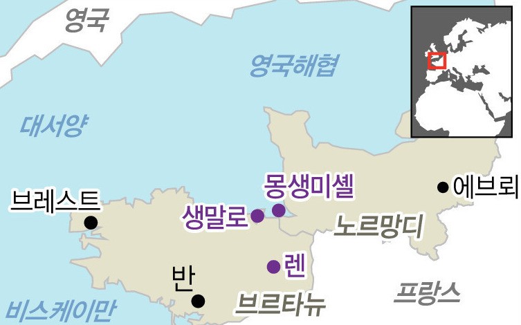 노르망디 '몽생미셸'과 브르타뉴 '생말로' (출처: 한겨레)