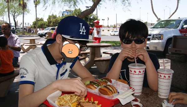 가족을 동반하지 않았다면, 예전에 그랬던 것처럼, 카지노에서 슬롯머신을 재미 삼아 당겨보고 하겠지만 (몇 달 전에 베트남 호찌민시티의 쉐라톤호텔 카지노에서는 회원카드까지 만들었으나, 어디까지나 회원 가입하면 100달러인가 시드머니 넣어준다길래 그런 것이지 카지노에 별 관심은 없다.), 아이들이 우선이기에 어디 가서 무엇을 먹느냐가 가장 큰 관심이다. 그래서, 또는 그런데, 라스베이거스에 들어서자마자 In-N-Out Burger부터 찾았다.