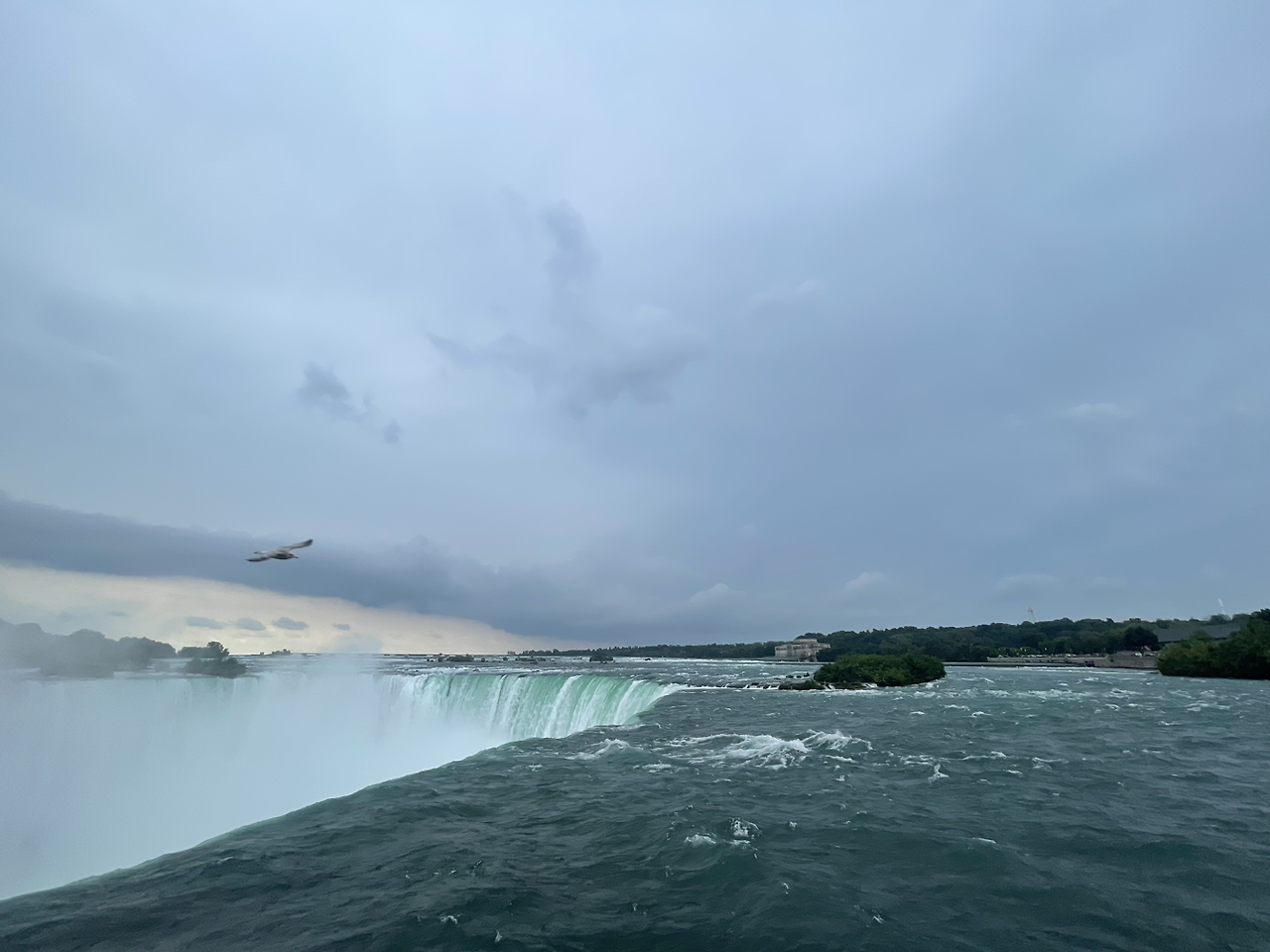 거대한 이리(Erie) 호수를 떠난 물이 나이아가라 강으로 흐르며 또 다른 거대한 온타리오 호수를 향해 속도를 낸다.