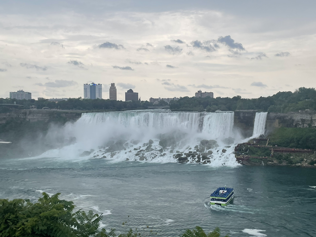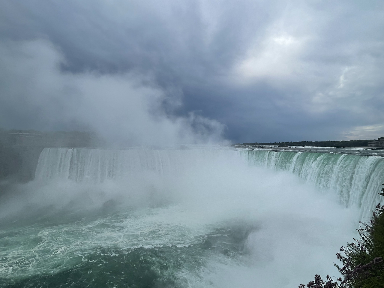폭포 저 위로부터 강물이 흘러 내려와 폭포와 가까워져 점점 더 빠른 속도로 흐른다. 콸콸 거리며 흐르다 어느새 천둥처럼 으르렁 거린다. 그 순간 나도 모르게 충동적으로 창가 쪽으로 몸을 기울여 앞으로 나가려 한다. 그새 강물은 주저 없이 몸을 아래로 내던지고, 무언가 거대한 것이 쿵 하고 끊임없이 떨어지는 충돌의 소리가 전망대까지 들린다. 물보라 구름이 솟아오른다. 큰 충돌 후에 강물은 언제 거칠었냐는 듯 조용하게 다시 흐른다. 그리스 사람들이 말하는 카타르시스가 나이아가라에 아주 잘 어울린다고 생각해 본다.