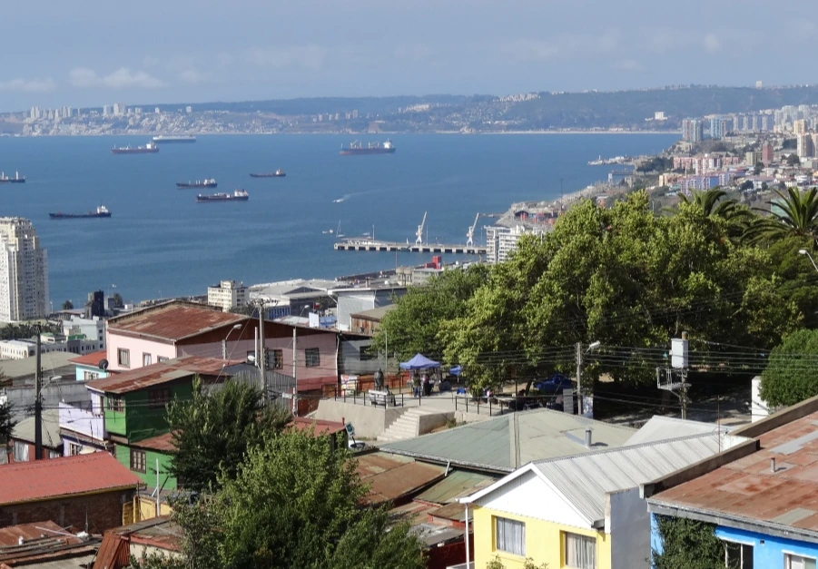 이른 아침 산티아고를 떠나, 기어이, 태평양이 있을 법한 방향으로 (북서로) 한 시간 반 가량 차를 달렸다. 그 길의 끝에서 마침내 끝없는 언덕 위로 알록달록한 집들이 빼곡히 들어찬 마치 (쇠락한) 천국의 골짜기와 같은 모습을 이룬 발파라이소(Valparaíso, Valley of Paradise)와 조우하였다.