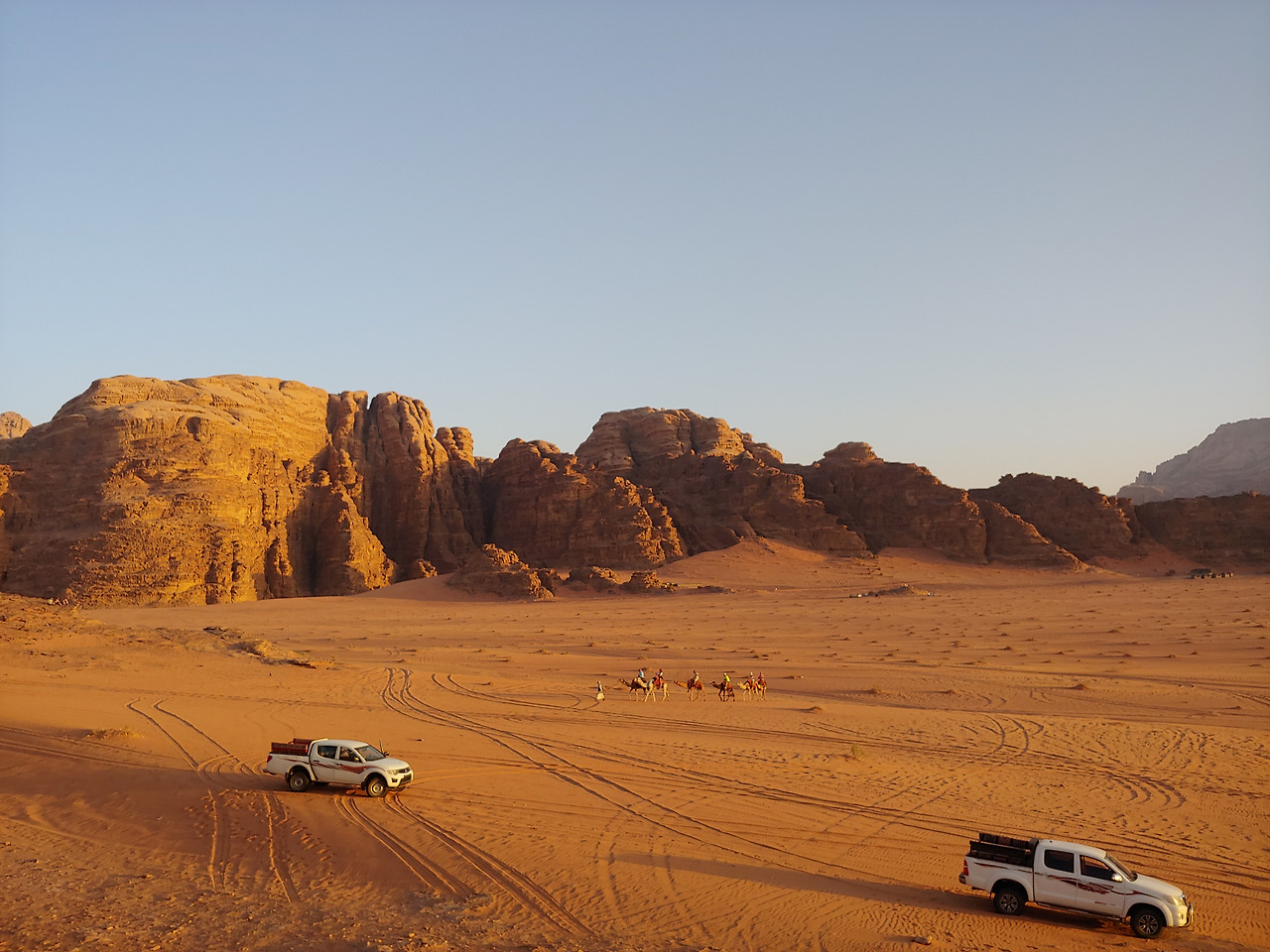 와디럼은 사우디아라비아와 접경한 요르단 남쪽에 있다. 붉은색을 띠어서 '붉은 사막'으로 불리는 데다, 협곡이며 절벽이 여느 사막 풍경과 사뭇 다르다. 게다가 수 만점의 암각화 등 만 년 이상 세월의 유적까지 안고 있다.