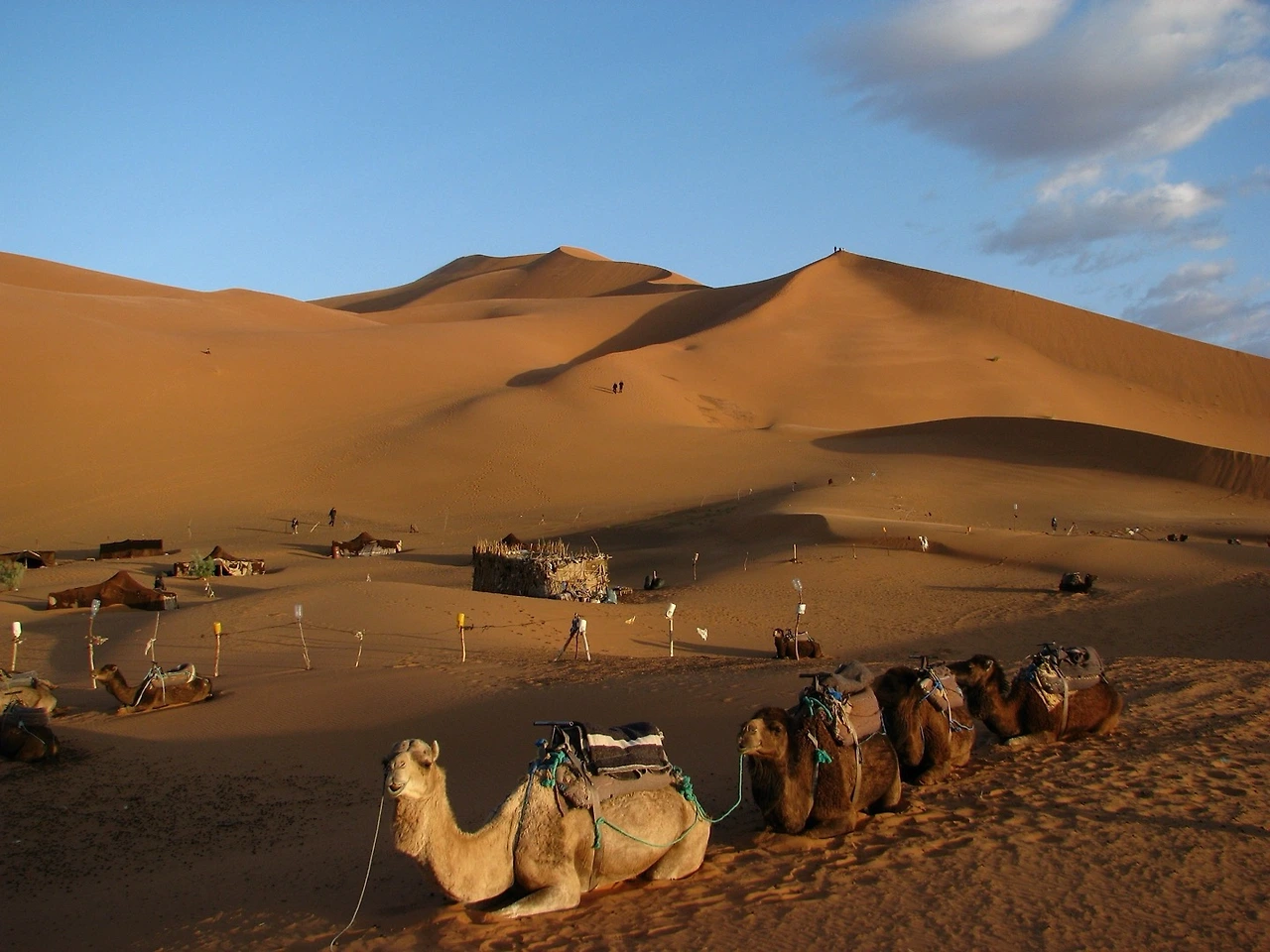 모로코 천년고도 마라케시까지 찾아온 기회에, 2박 3일 짐을 꾸려 길을 떠난다. 알제리 국경 가까이 사하라 사막 깊숙이 들어가는데만 밴을 타고 한나절보다도 훨씬 더 걸린다. 도중에 카스바도 들르고 해서 지루함이 덜하다. 베두인(아랍 전역에 퍼져 사는 유목민) 텐트에서 잠을 자고, 그들이 차려주는 밥을 먹고, 밤하늘의 별을 본다. 중간 날이 되어 모래 지평선 너머로 붉은 태양이 떨어질 즈음 낙타를 타고 사막 위를 걷고 석양을 바라본다. 모래, 바람, 태양, 찌는 더위, 목마름, 밤, 별, 뼛속을 파고드는 추위, 그리고 낙타... 이들 요소의 조합으로 사막은 평생 잊지 못할 추억이 된다.