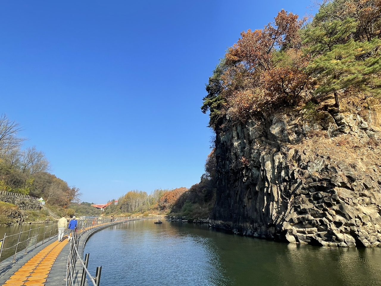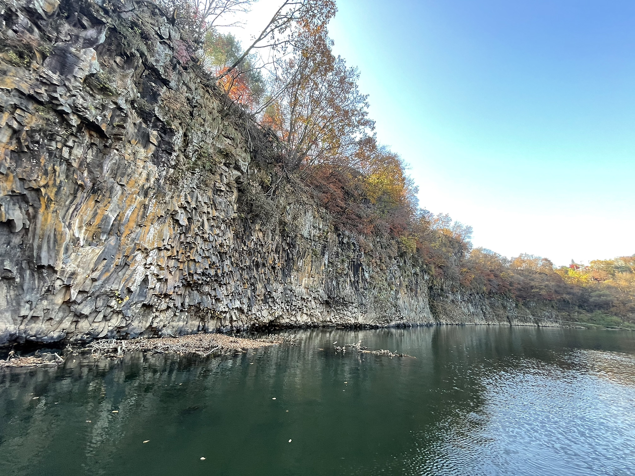 주상절리의 협곡과 벼룻길 사이로 강은 끈질기게, 말없이, 완만하게 흘렀다. 강과 벼랑길에 걸친 가을이 푸석푸석한 냄새를 풍기며 곱게도 늙어갔다. 수직적벽(垂直赤壁) 송대소(松臺沼) 절경에 더는 나의 길을 쉬이 만들지 못하고 멈추어 섰다.