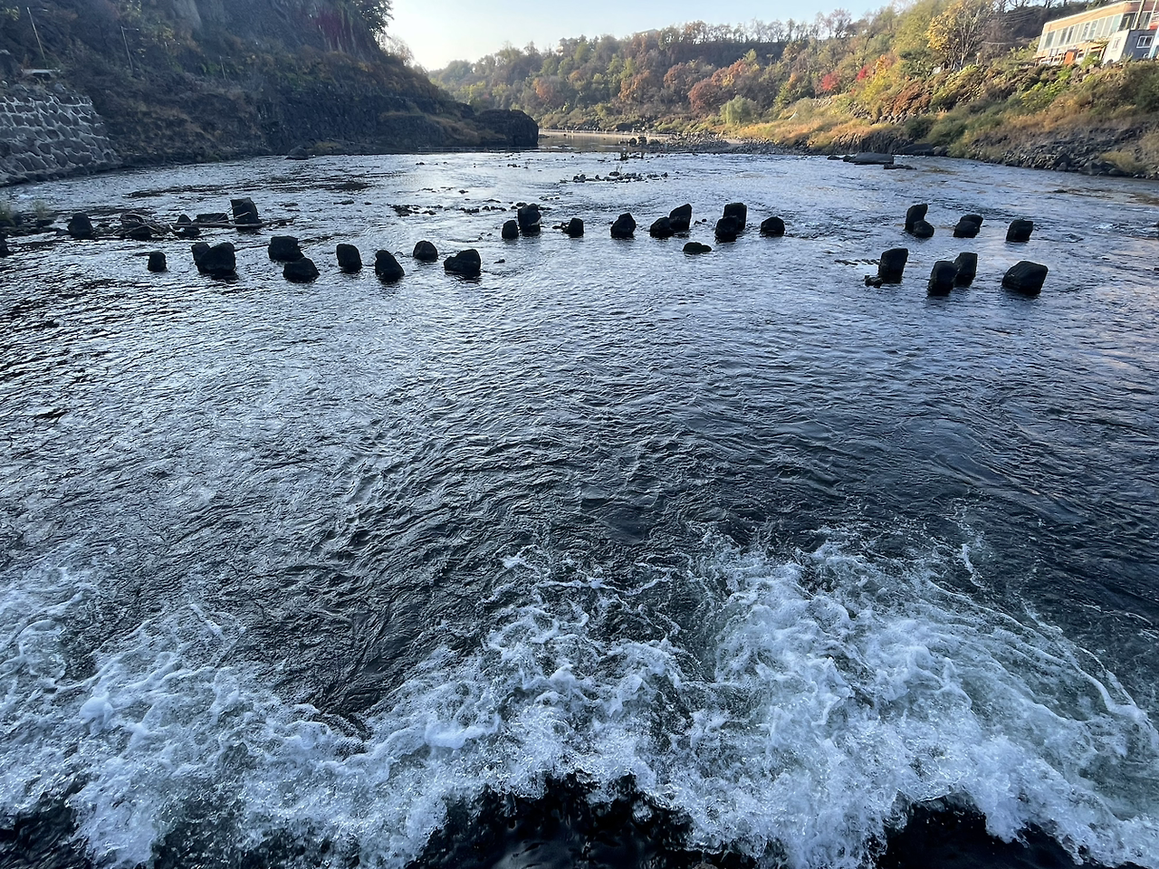 매표소 안내원의 대답은 강이 얼어붙고 그 위로 눈이 쌓이는 겨울이 되어야 물 윗길은 더 멋질 것이다는 말로 들렸다. 아직 계절이 일러 짧은 구간만 다닐 수 있어 요금은 2천 원만 받는다고 하였다. 가을과 겨울의 낭만 차이가 딱 3천 원이라는 제법 복잡한 속셈에 (정상요금을 따지자면, 1만 원 내면 철원사랑(5천 원) 상품권을 받는다.) 조금은 심드렁하게 강으로 내려섰다.