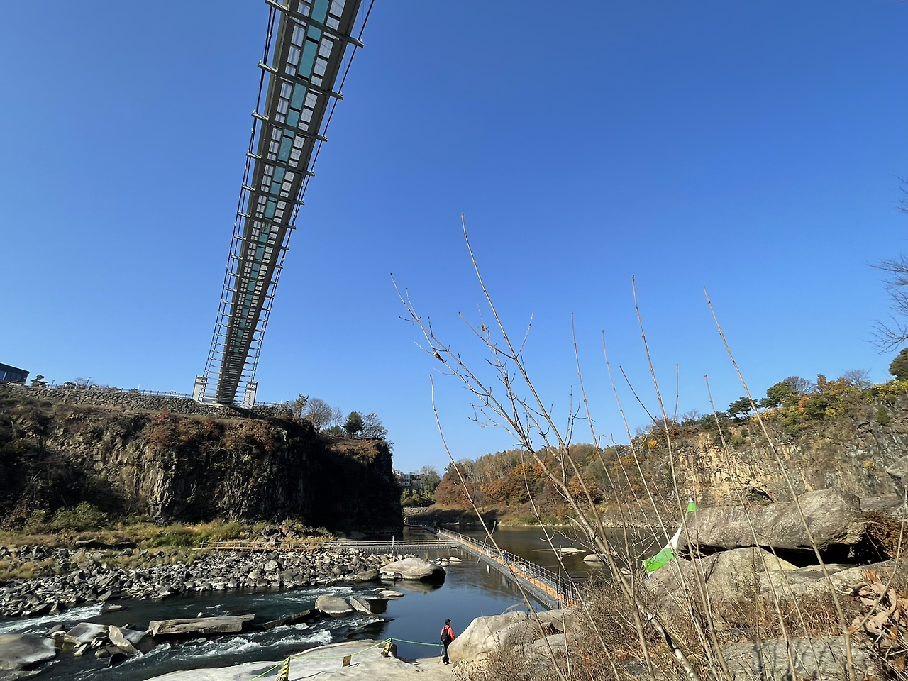 "한겨울이면 꽁꽁 얼어붙은 한탄강 위로 썰매를 달리던 아련한 추억에 물 위를 걸어보는 아이디어까지 나왔다지 뭐예요."