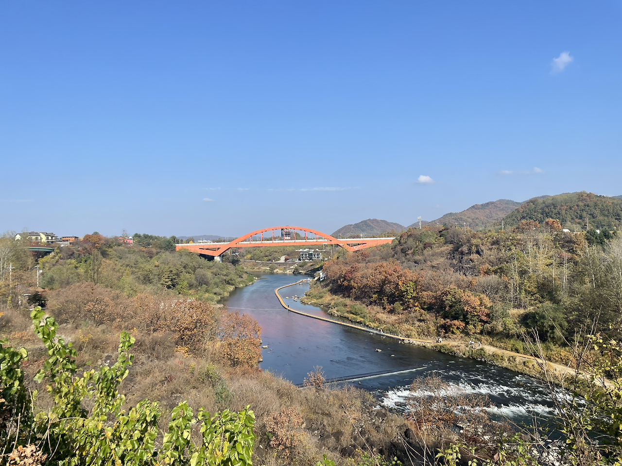 뜻하지 않은 길에서 내가 지나온 물 윗길을 조망하였다. 바라보이는 강, 길, 나무와 그 모든 것들을 감싸 안은 가을 빛깔 사이를 영화 속 엑스트라처럼 스쳐 지나갔다.