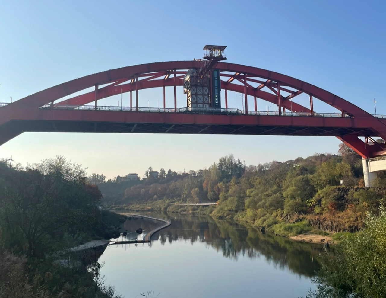 이립(而立)의 나이에 곧 죽고 말 유배길에 오르던 연산군의 홍의(紅衣)를 닮은 듯 붉은색 페인트를 짙게 칠한 아치 다리 태봉대교에 다다랐다. 한탄강에 걸쳐진 다리 아래로 강물은 멀리 이어졌다.