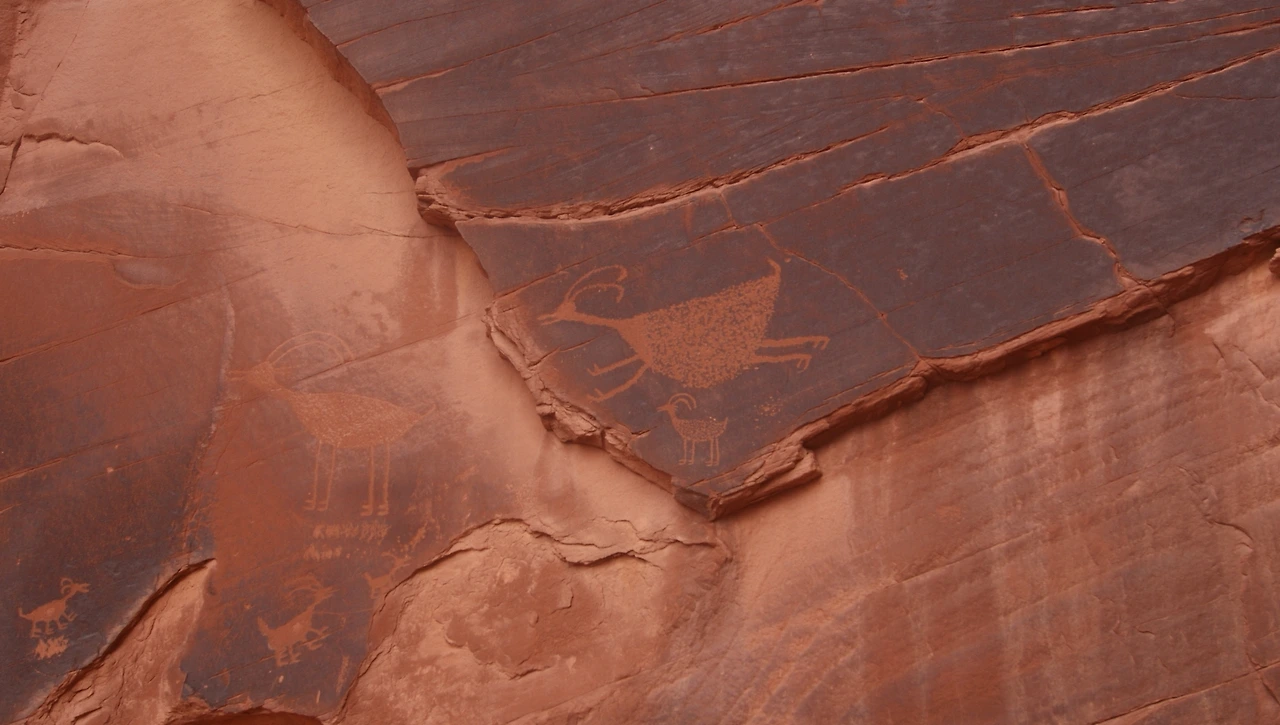 Water Birth Cliff (물이 탄생한 절벽)와 Sun's Eye Arch (태양의 눈 아치) 지역은 신성한 땅이라서 원주민과 함께 하지 않는 사람은 입장이 불가한 지역이다. 이곳엔 고대 아메리카 원주민의 선조들이 남긴 암각화가 아직도 여럿 남아 있다. '바위 둘레 하얀 줄무늬'라고 내가 번역했던 모뉴먼트 밸리를 부르는 나바호 이름이 여기에 기원을 두고 있는 듯하다.