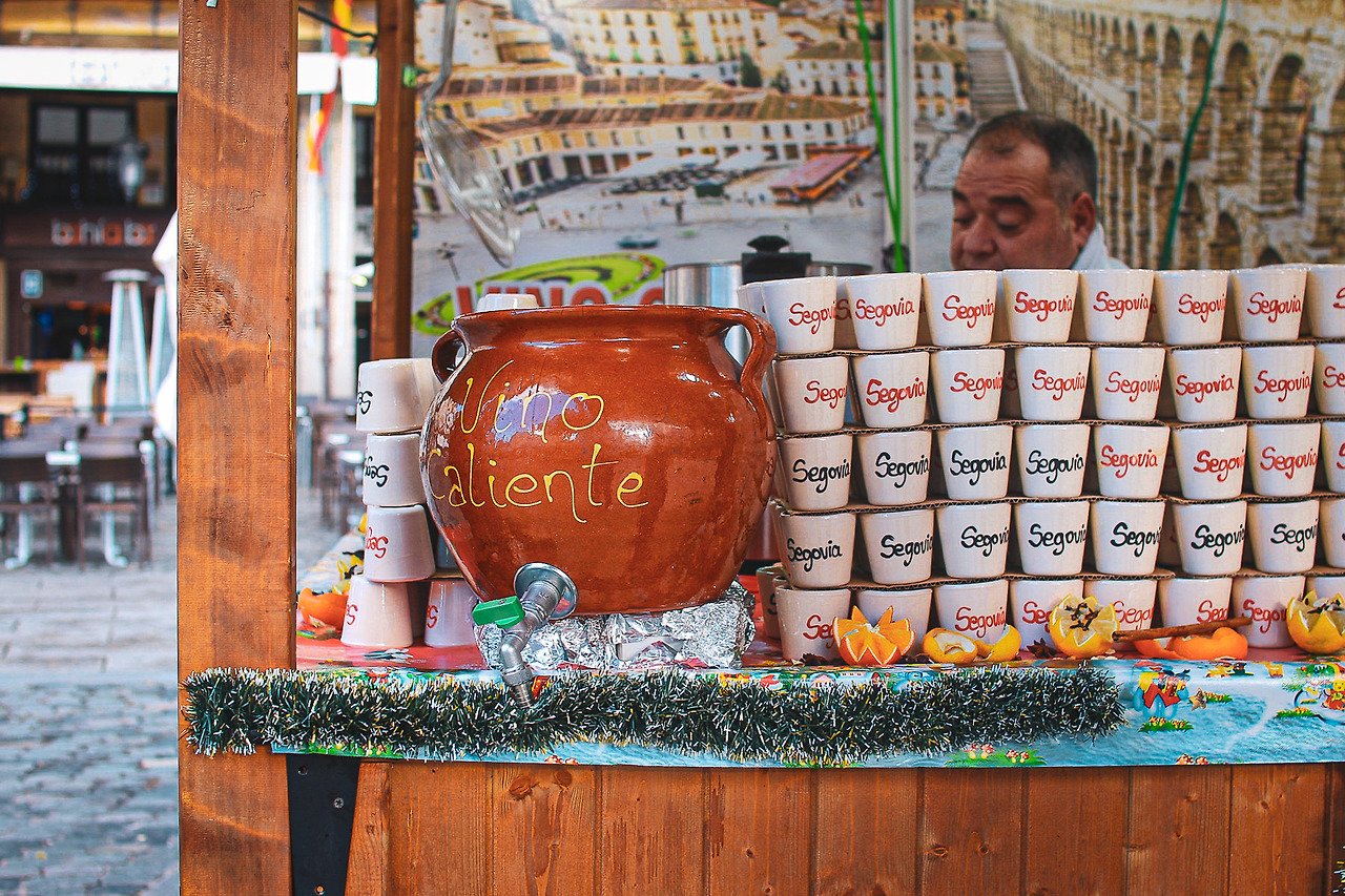 세고비아의 대광장은 대성당 바로 옆에 위치해 있다. 필자가 방문한 12월 말에는 크리스마스 마켓이 한창이라, 추운 손과 속을 녹이기 위해 한 부스에 들러 따끈한 음료를 마셨다.