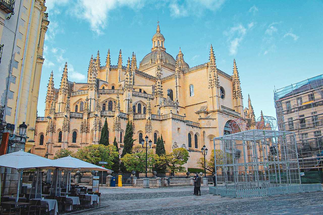 호텔에서 짐을 풀고 나와 첫 번째로 향한 곳은 세고비아 대성당(Catedral de Segovia)이다. 유럽에서 흔히 볼 수 있는 높고 좁은 구조의 성당들과 달리, 이곳은 튀르키예의 모스크를 연상시키는 널찍한 형태를 취하고 둥그런 돔을 올려 두었다.
