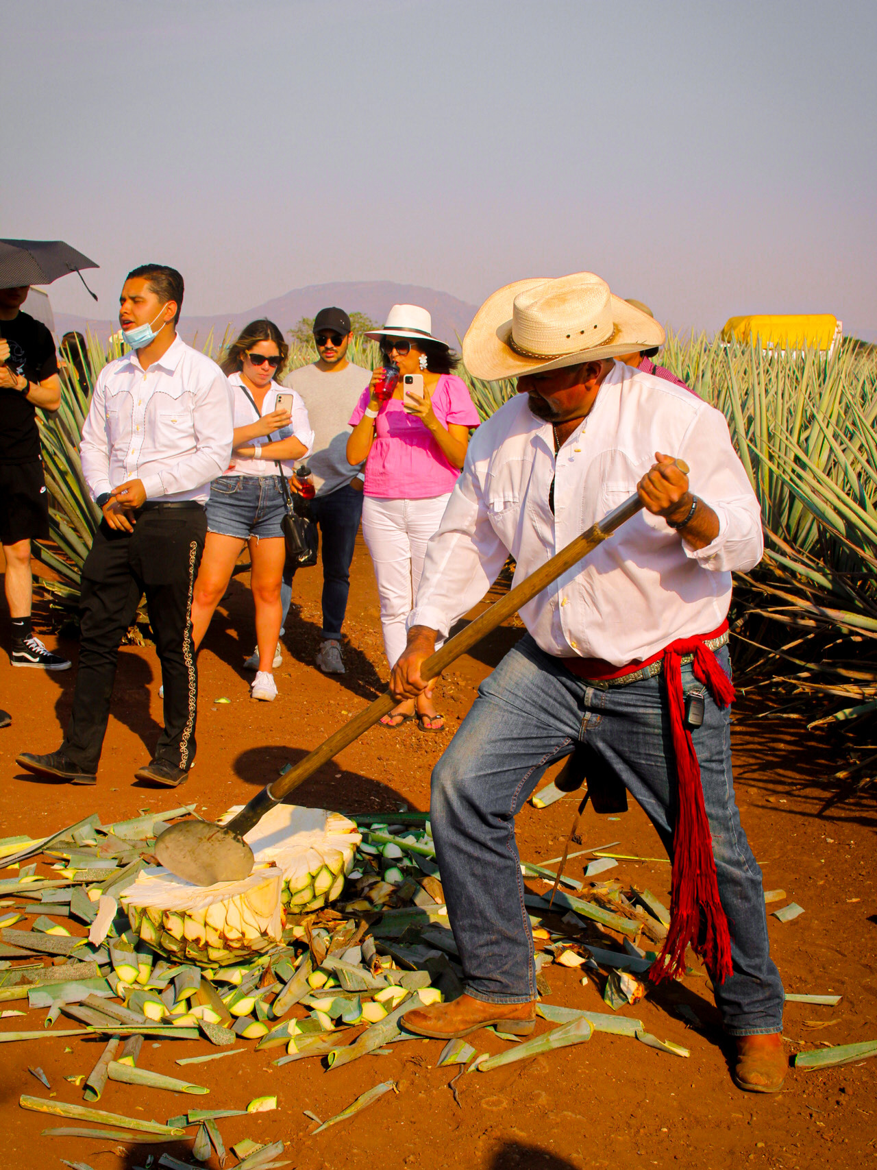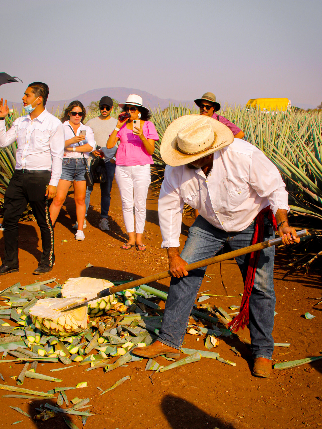 광란의 공연 후, 버스를 타고 이십여 분간 달리면 광활한 아가베 농장이 펼쳐집니다. 어마어마한 규모의 밭에서 재배된 이 용설란들이 원산지 인증을 받은 각지의 공장으로 보내져 가공을 거칩니다. 석양이 질 무렵이기에 왜인지 정적이고 쓸쓸한 느낌을 주는 풍경이었어요.