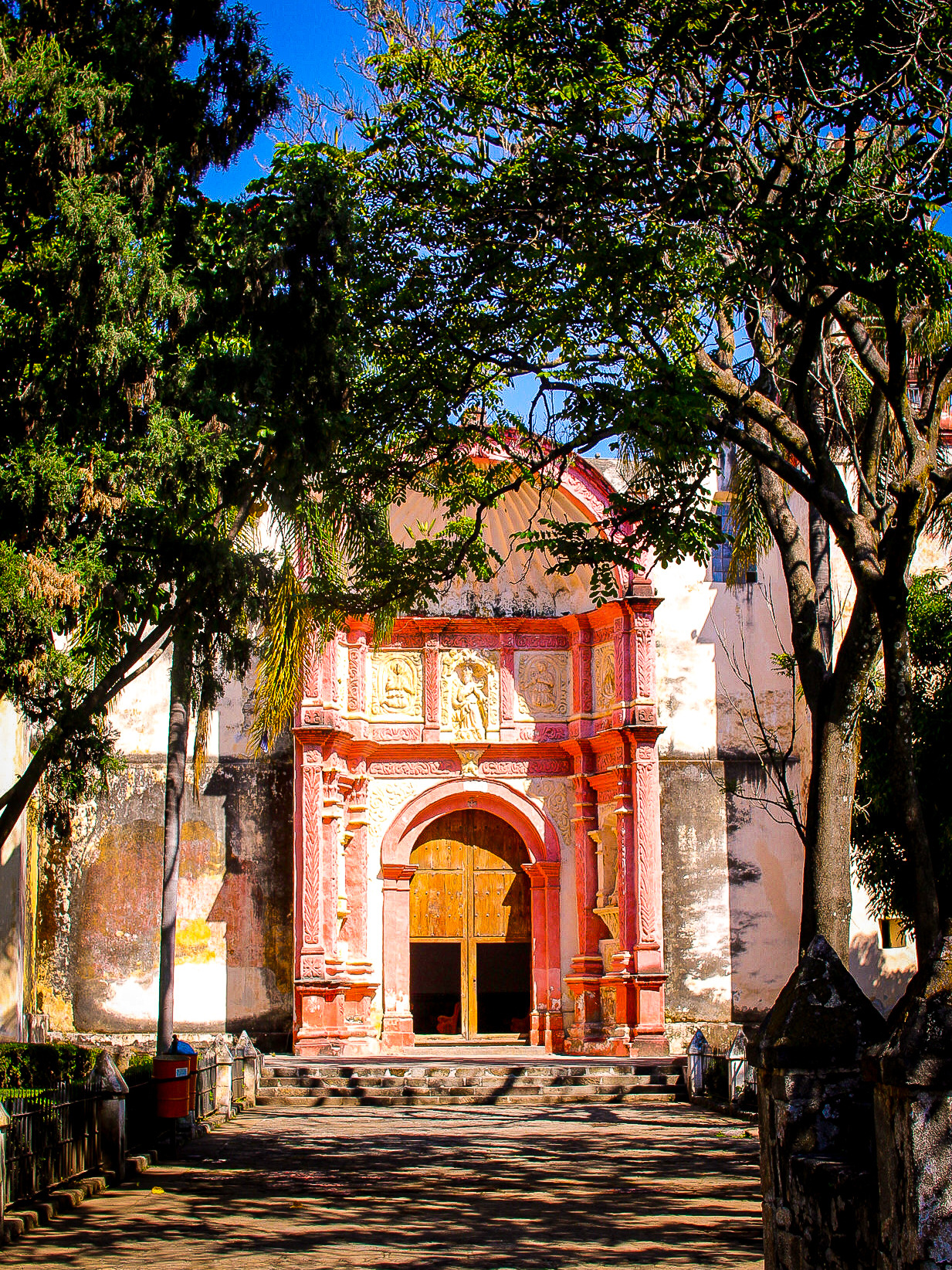 쿠에르나바카의 상징이기도 한 분홍색 성당. 규모가 크지 않지만 차분하고도 온화한 분위기에 마음이 편안해지는 곳이다. 사진 속 건물 외에도 다양한 예배 시설이 갖추어져 있었다.