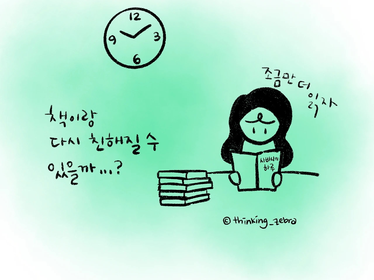 “흑흑, 네 맞아요 선생님. 시간적 여유가 생겼는데도 책에게는 아직도 마음을 내줄 수가 없어요.”