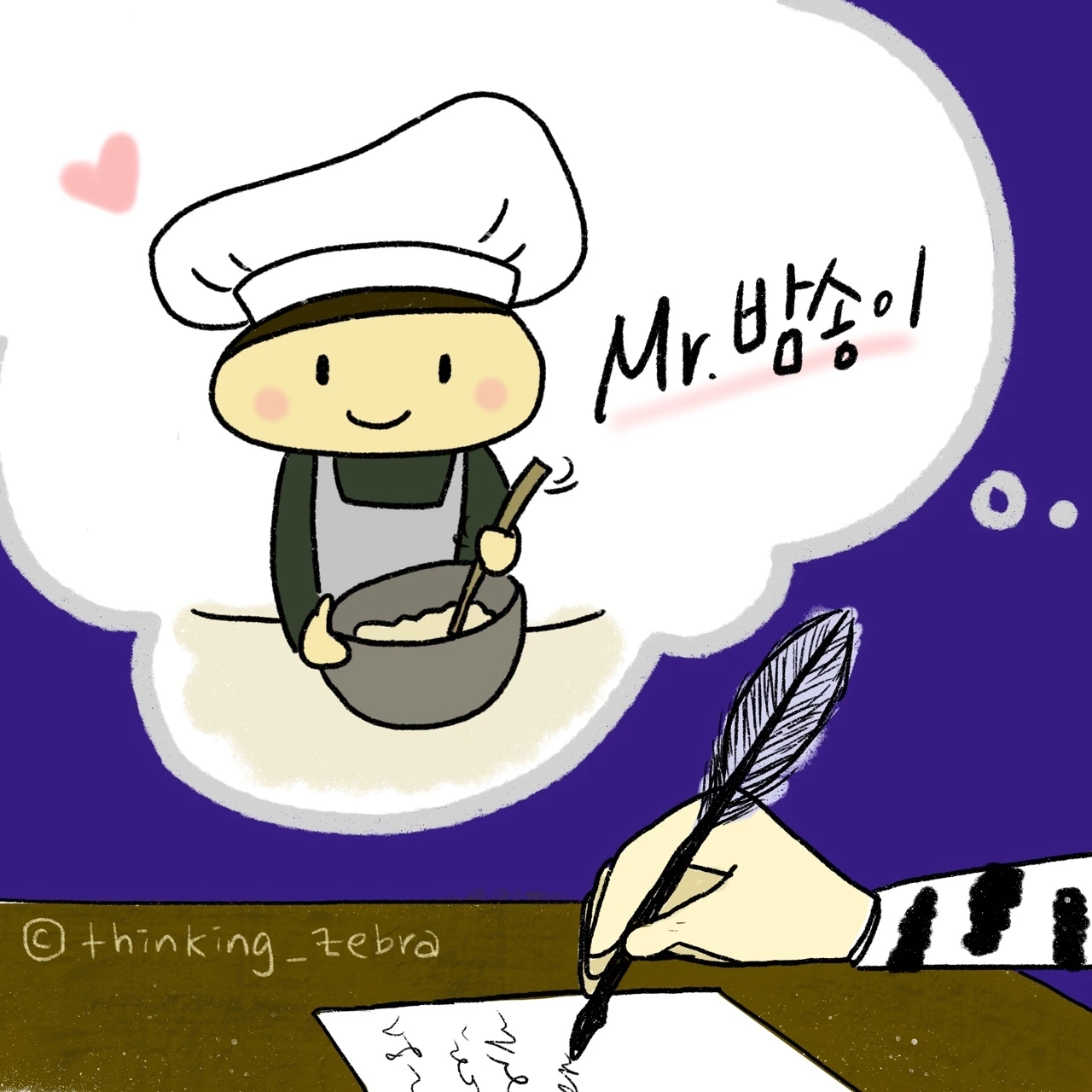 그렇게 시간이 흘렀다네! 어느새 7개월이라고. 그간 일들이 어떻게 진행되었을지 눈에 선하지 않은가? 시간이 적절히 쌓이고 나니 미스터 밤은 정식 셰프가 되었다네. 물론 나의 채 썰기는 따라올 수 없지만(이 부분만큼은 명확히 하고 싶네만), 그는 이미 나를 능가했다네. 미스터 밤은 내가 이곳에서 만들었던 요리보다 훨씬 더 다양한 요리들을 척척 만들어내고 있다는 거야.