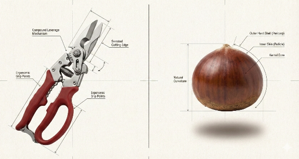 밤 깎는 가위를 파는 상인이 있습니다.