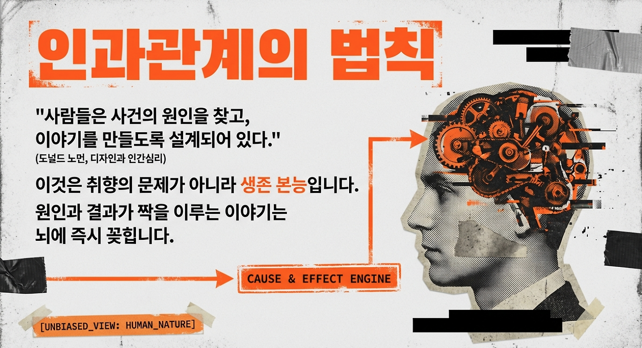 사람들은 사건의 원인을 찾고, 설명과 이야기를 만들 수 있는 내재적인 성향을 가지고 있다 이것이 이야기하기가 설득적인 매체인 이유다. 이야기는 우리의 경험과 공명하고 새로운 사례를 제공한다. 우리 경험과 다른 삶들의 이야기에서 우리는 사람들이 행동하고 일이 진행되는 방식에 대해 일반화하는 경향이 있다. 우리는 사건의 원인을 찾고, 이런 원인과 결과의 짝짓기가 말이 되는 한, 그것을 받아들이고 그것을 사용하여 미래의 사건을 이해한다. ( P85, 디자인과 인간심리, 도널드노먼)
