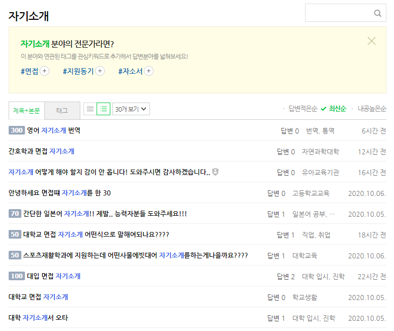 나는 최근 개인 홍보를 위해 주로 파워포인트 관련 질문에 답변을 달면서 지식iN 활동을 시작했다. 이런저런 답변을 달던 중 하나 눈에 띄는 것이 있었는데 바로 대입 면접을 앞둔 고등학생이나 대학생들이 자기소개 관련 질문을 꽤 많이 올린다는 것이었다. 생각해보면 우리 생애 첫 발표나 프레젠테이션은 자기소개일 거다. 앞선 글들을 통해 무대공포증 대처법과 발표자가 가져야 할 태도를 확인했다면 생애 첫 PT, 자기소개에 관한 이야기를 하는 것이 쉬어가듯 적절하다 판단해 이야기 해보겠다.